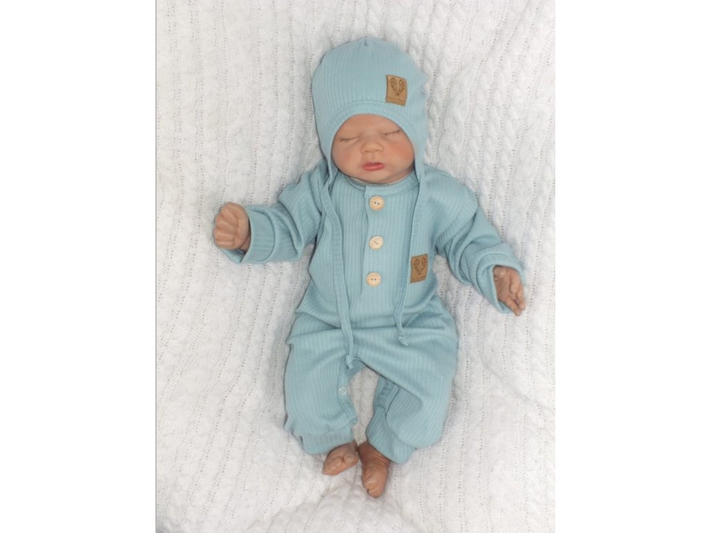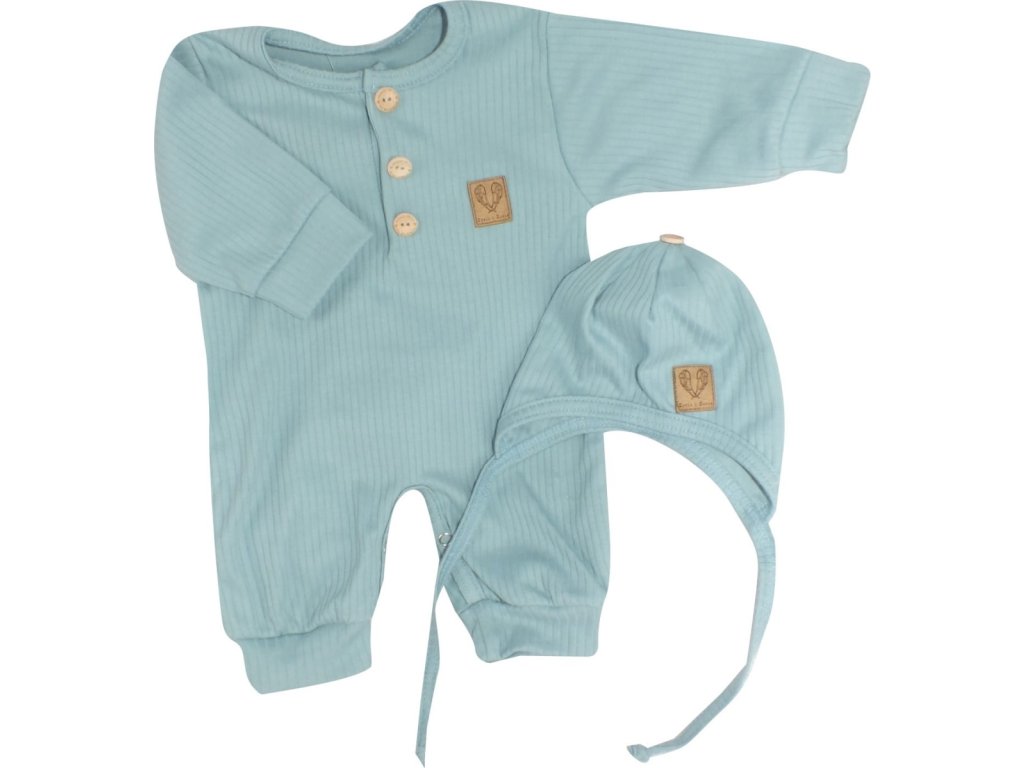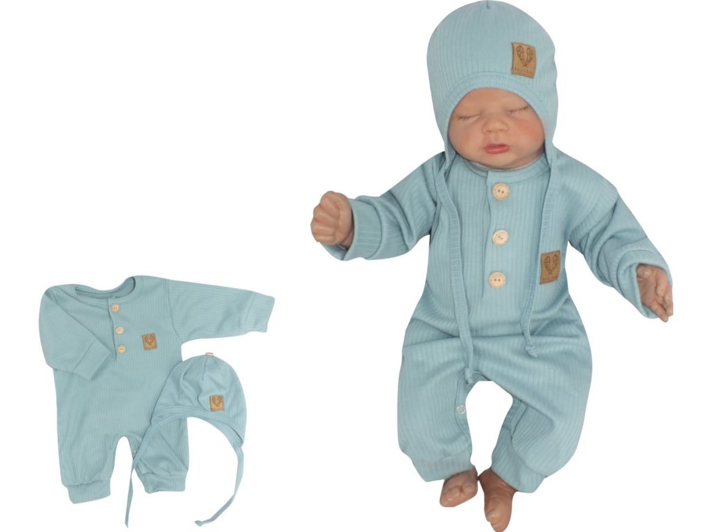 Z&Z 2-dílná soupravička žebrovaný overálek s knoflíčky a čepička, mořská modrá