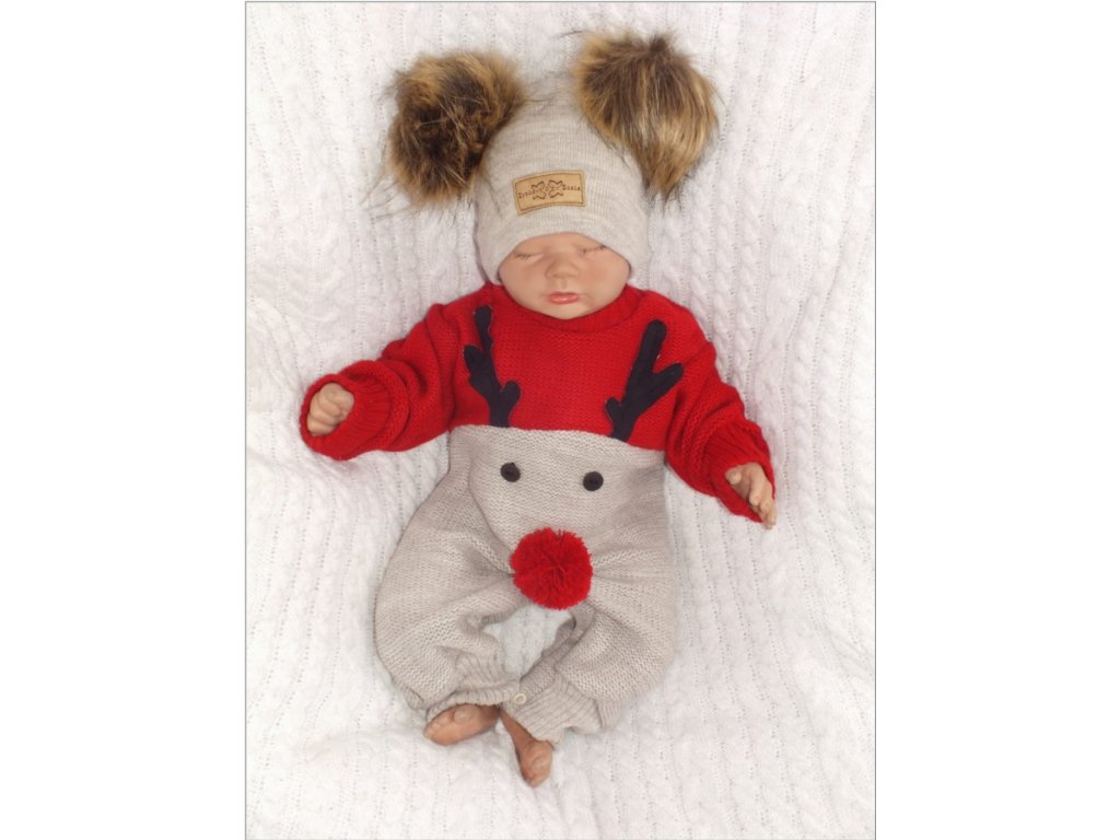 Z&Z Dětský pletený Vánoční overálek Baby Sob, červený, vel. 62