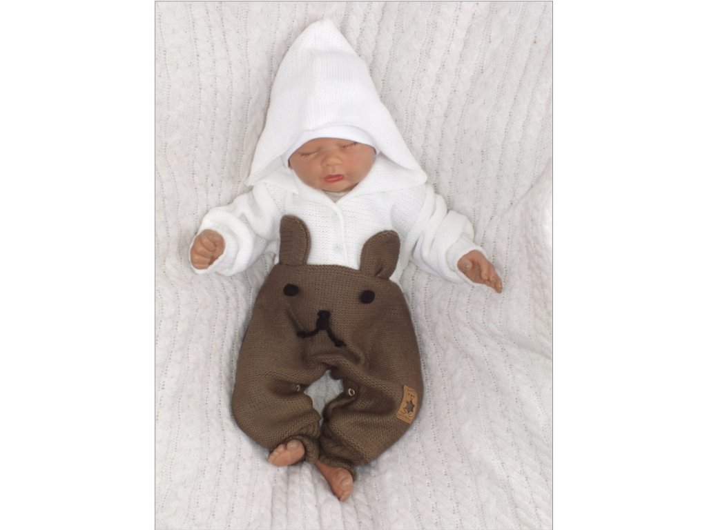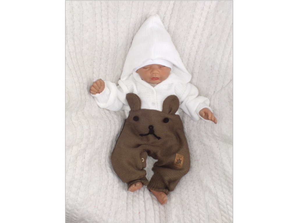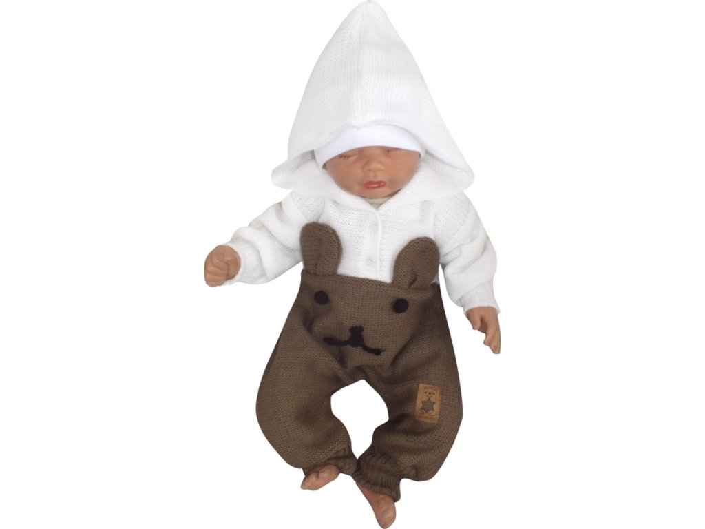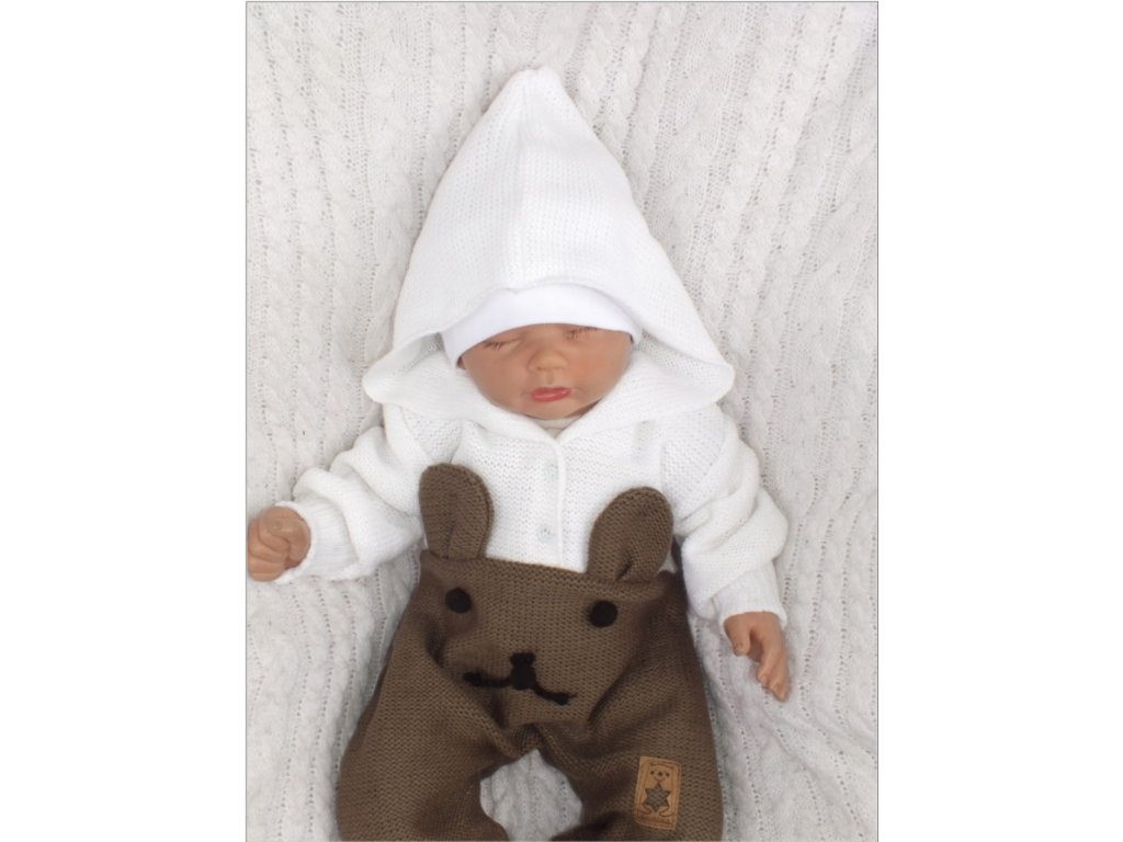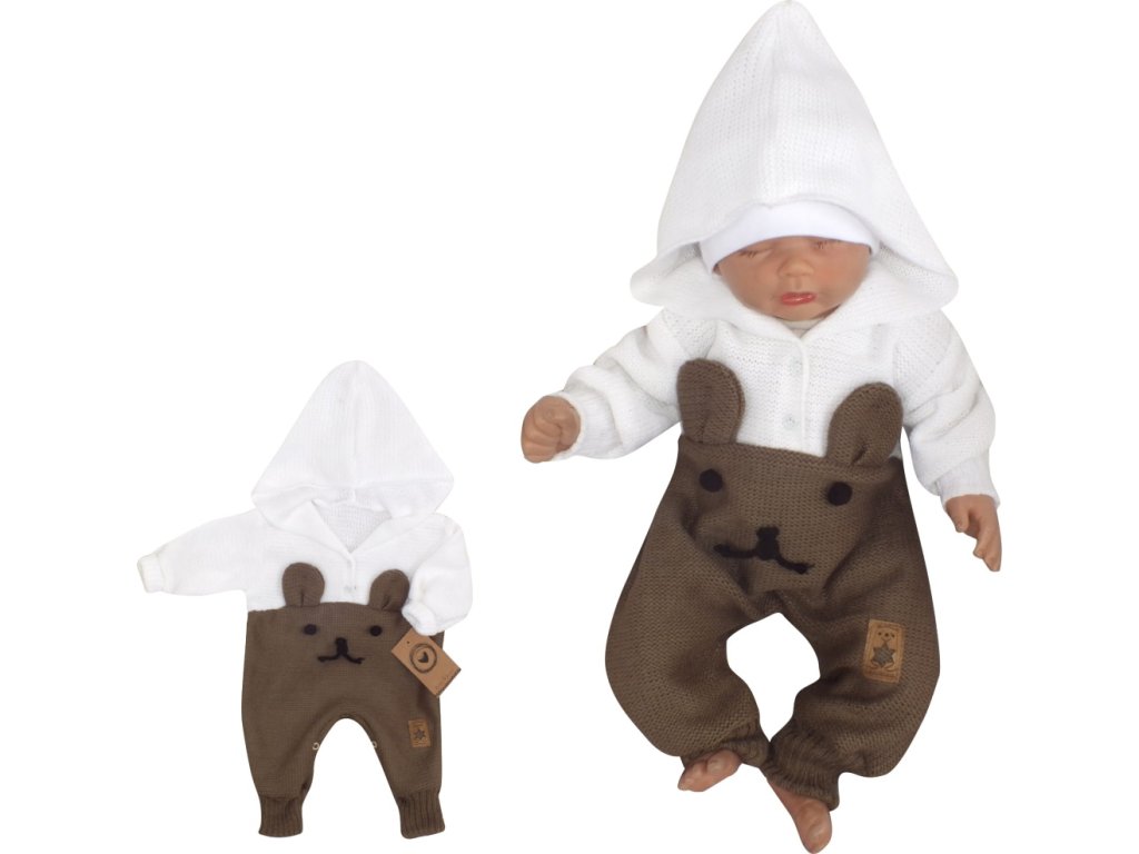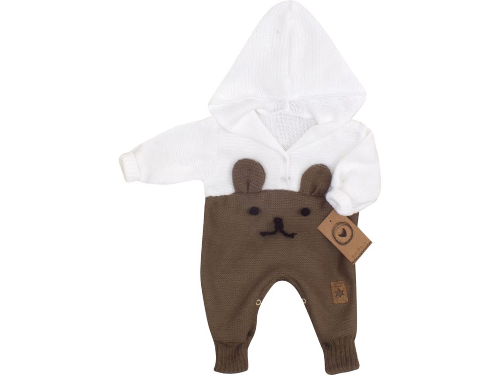 Z&Z Pletený dětský overálek s kapucí Medvídek, hnědý/bílý, vel. 68