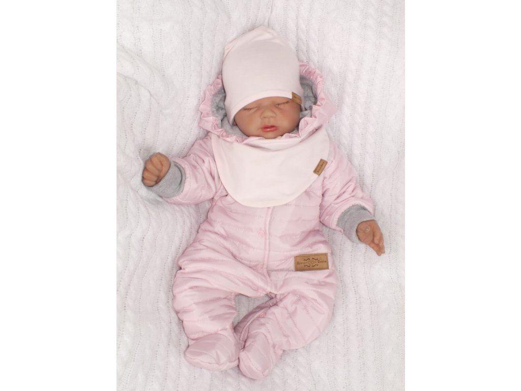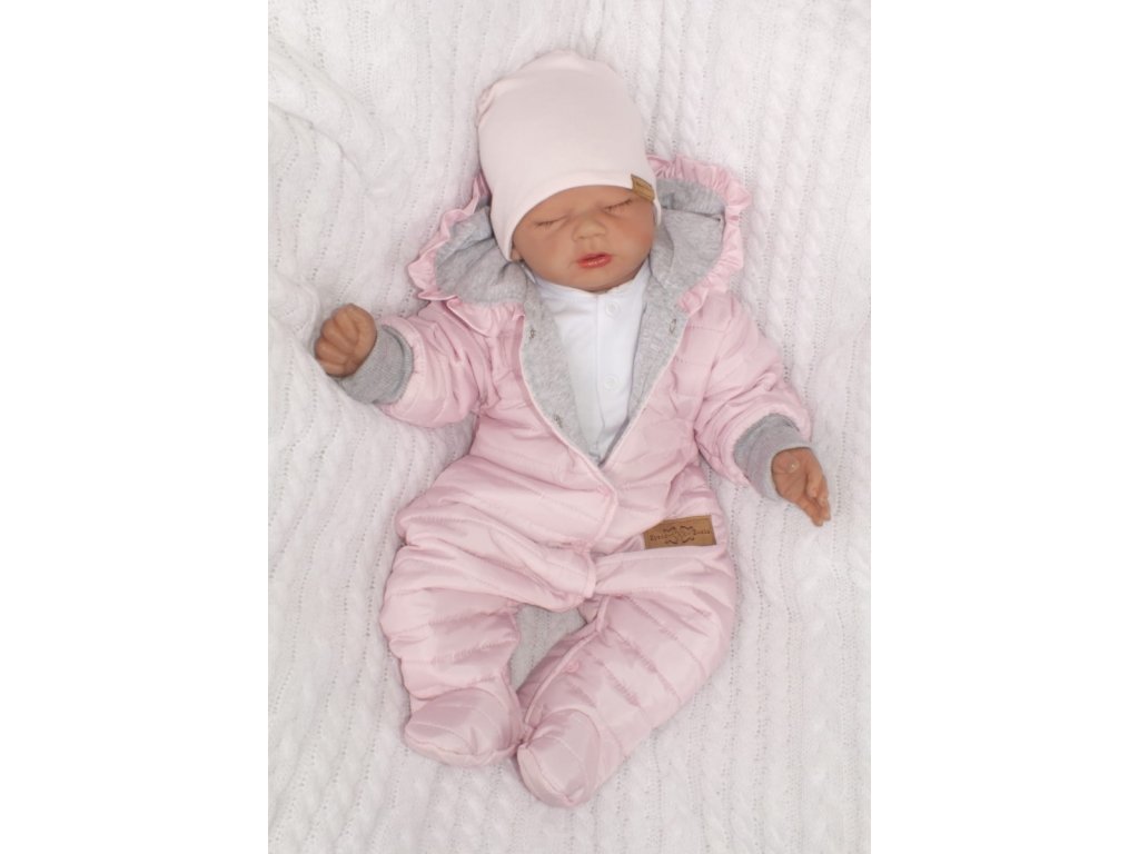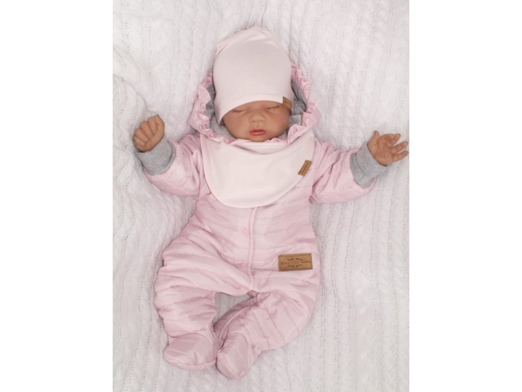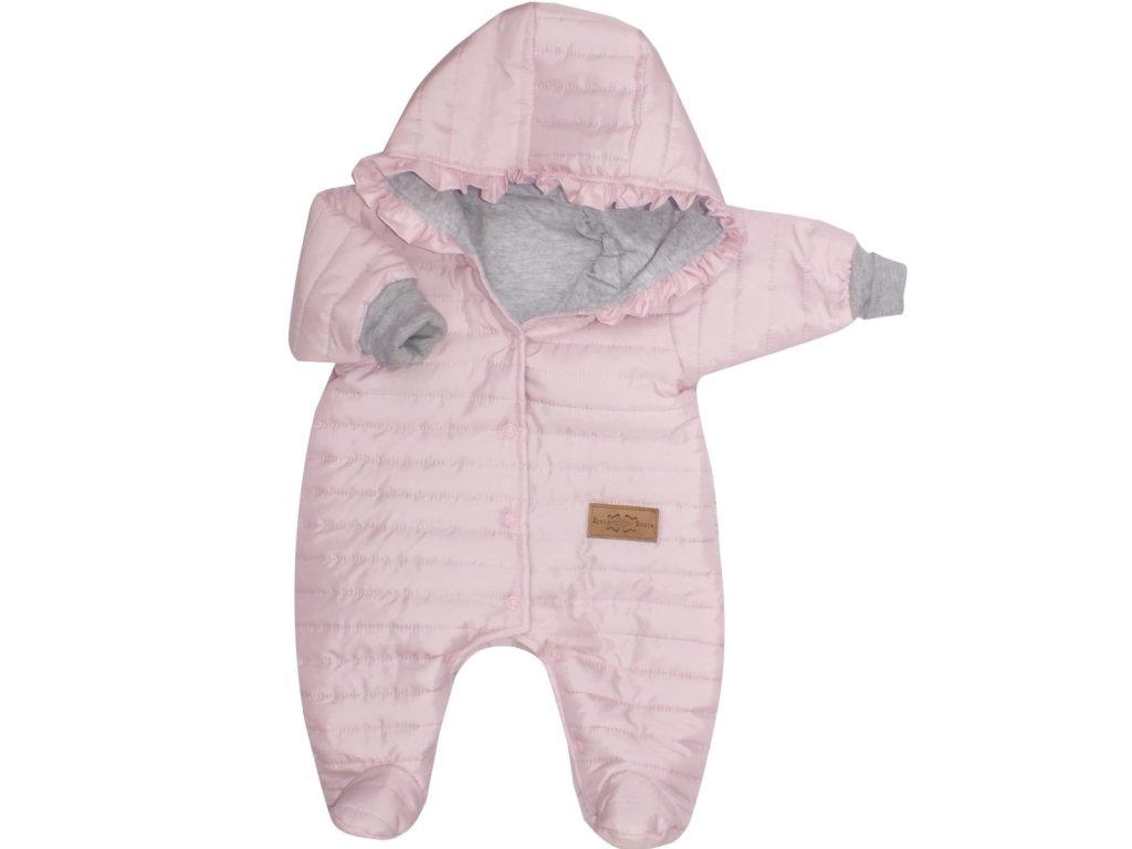 Z&Z Prošívaný dvouvrstvý overálek s kapucí a volánkem, sv. růžový