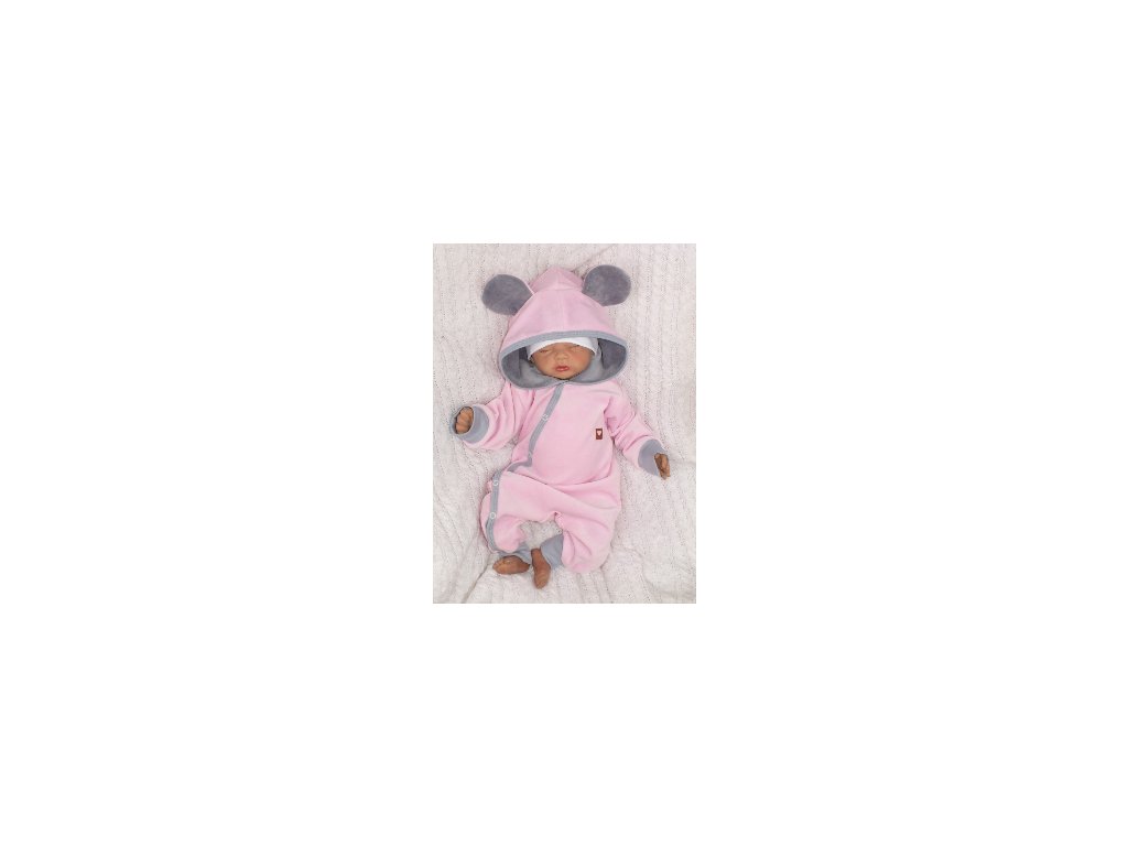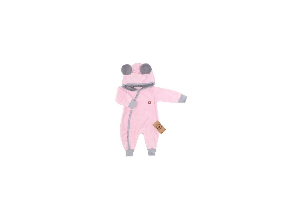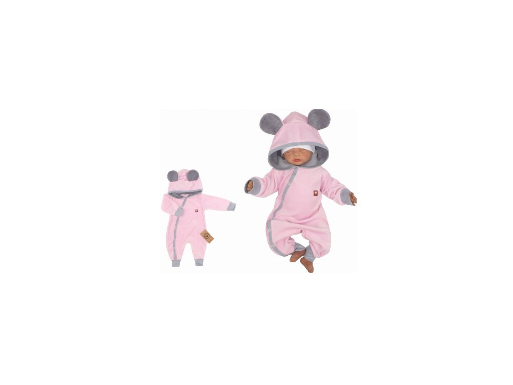Z&Z Velurový kojenecký overálek s kapucí a oušky - růžovo,šedý
