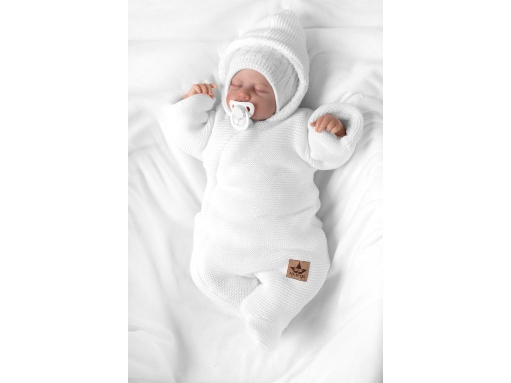 Zimní pletená kombinézka/overálek s kapucí Baby Nellys - bílá