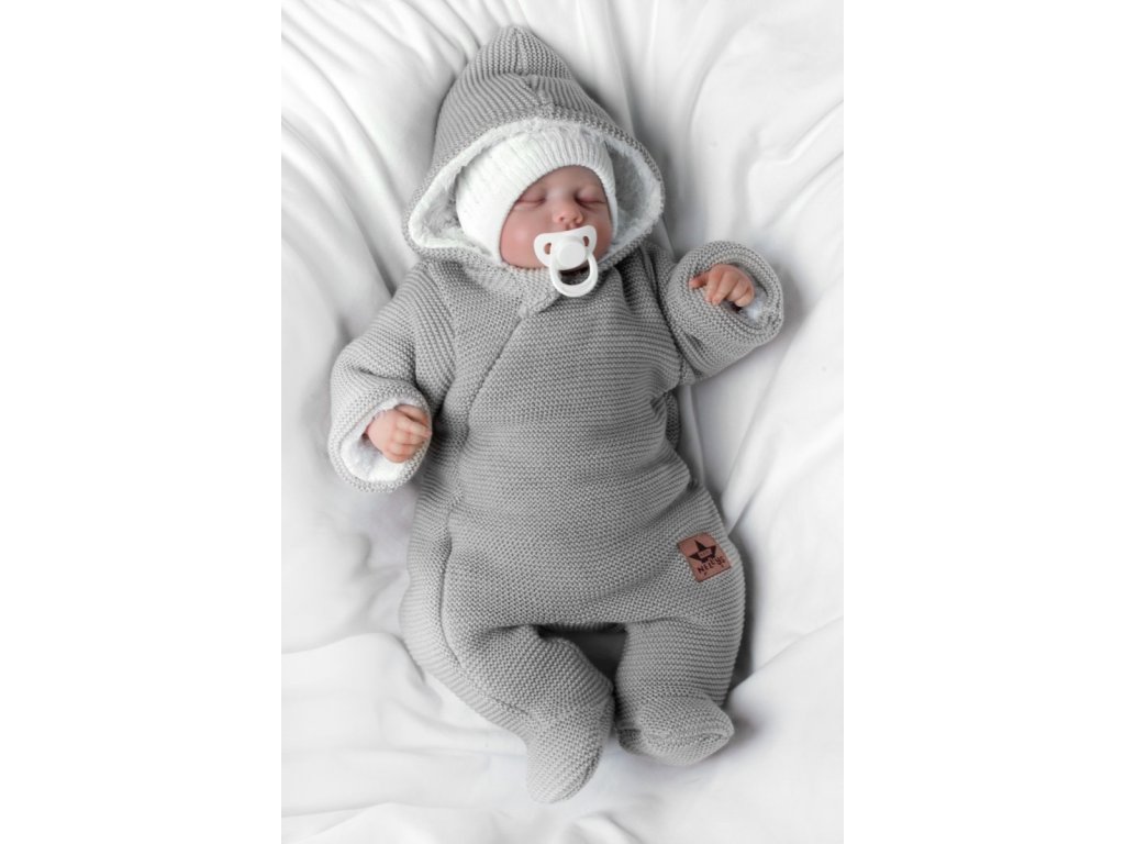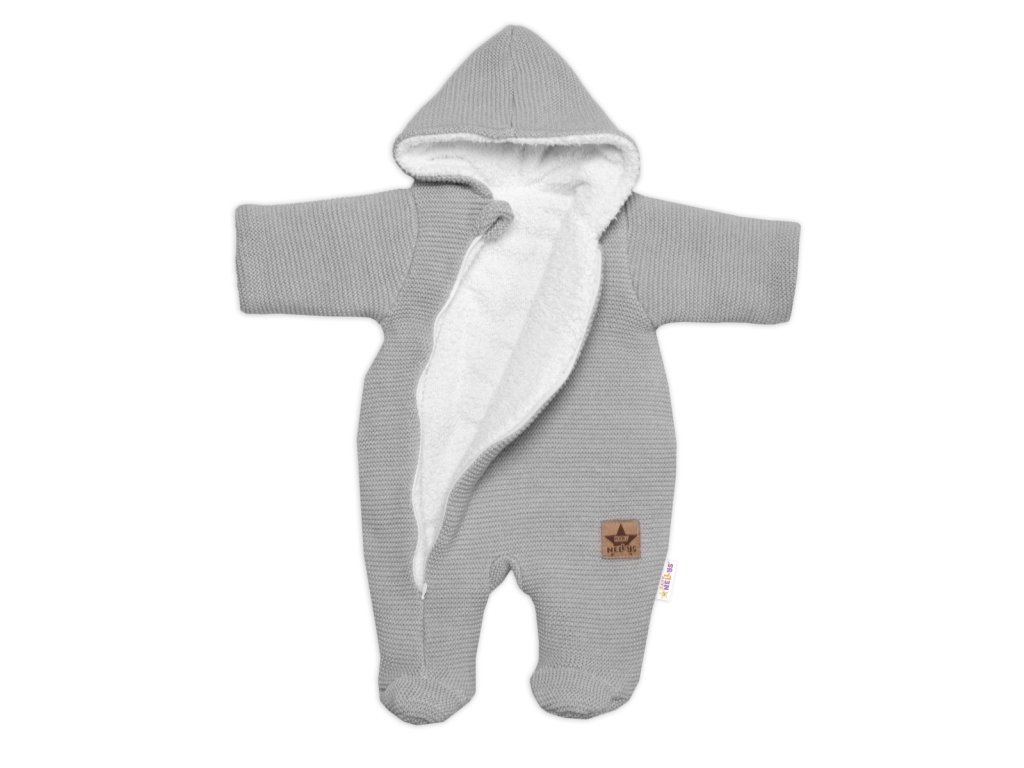 Zimní pletená kombinézka/overálek s kapucí Baby Nellys - světle šedá