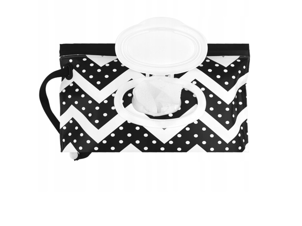 Pouzdro/obal na vlhčené ubrousky, Zig Zag - černá, bílá