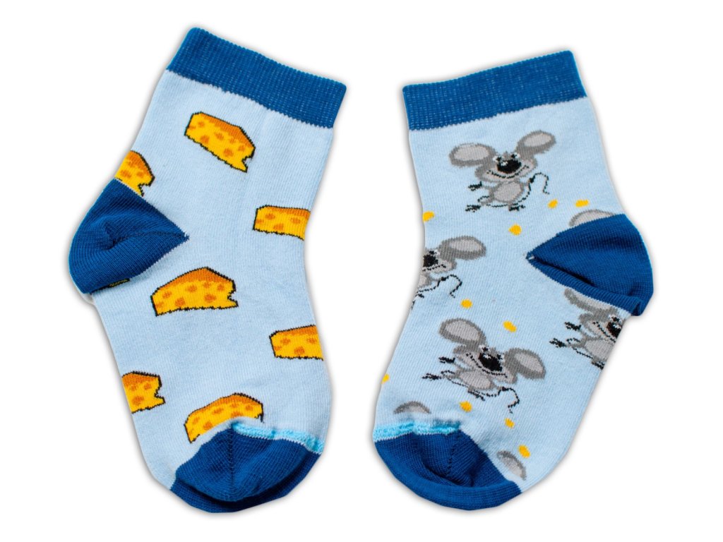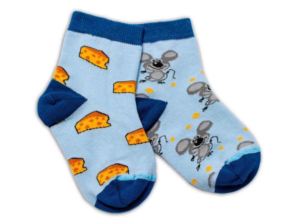 Baby Nellys Bavlněné veselé ponožky Myška a sýr - světle modré