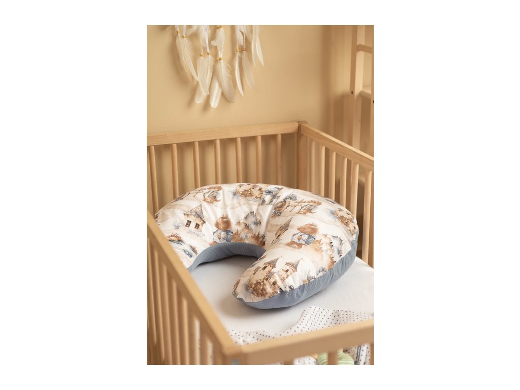 Kojící polštář, podkova, mušelín, bavlna - Dráček, modrý, jeans