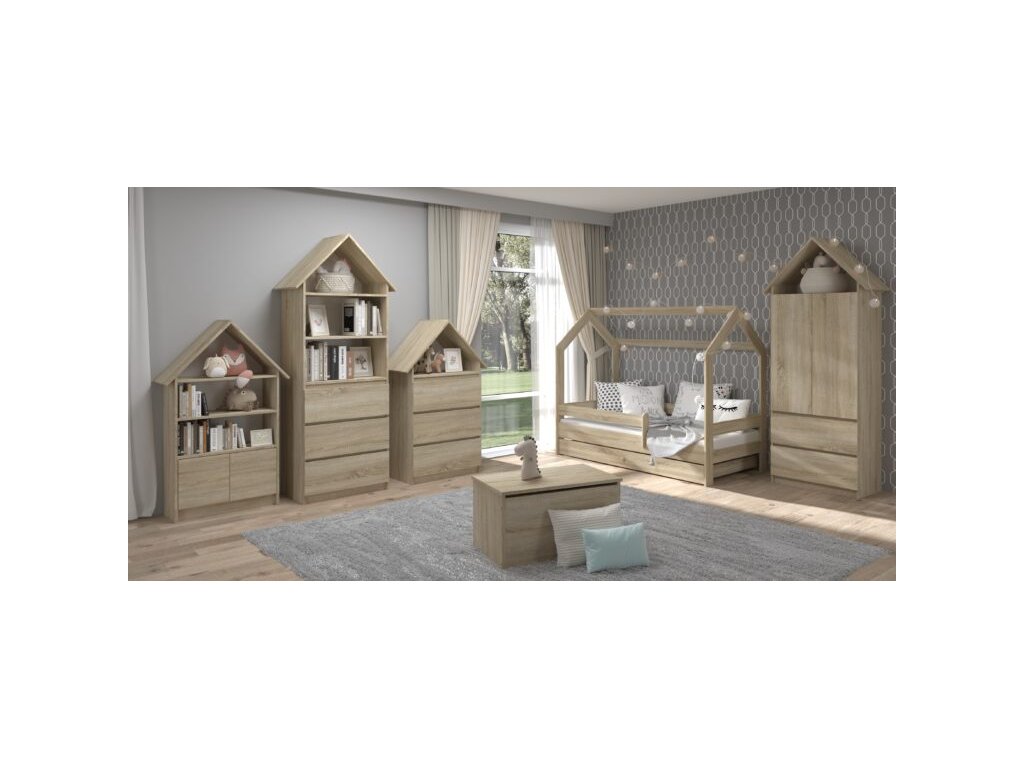 Dětská postel Domeček s výsuvnou přistýlkou 180 x 80 cm - Dub Sonoma