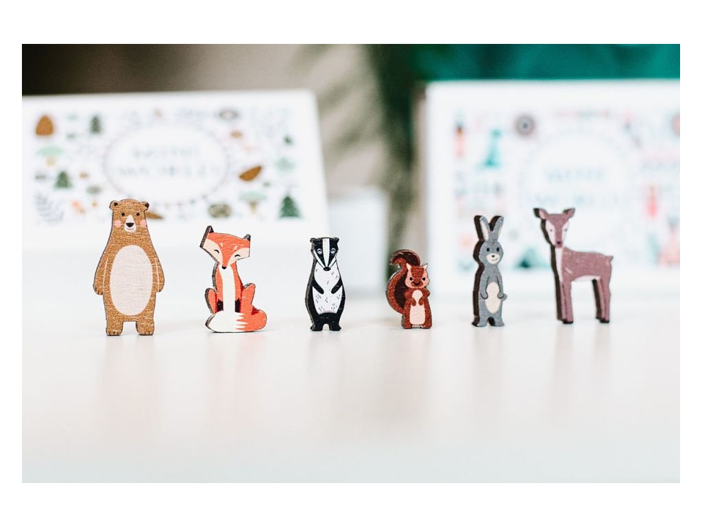 Zvířátka: | veverka, medvěd, zajíc, srnka, liška |