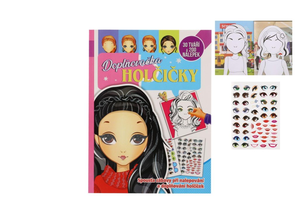 Pracovní sešit se samolepkami Doplňovačka holčičky + 200 nálepek CZ verze 21x28cm
