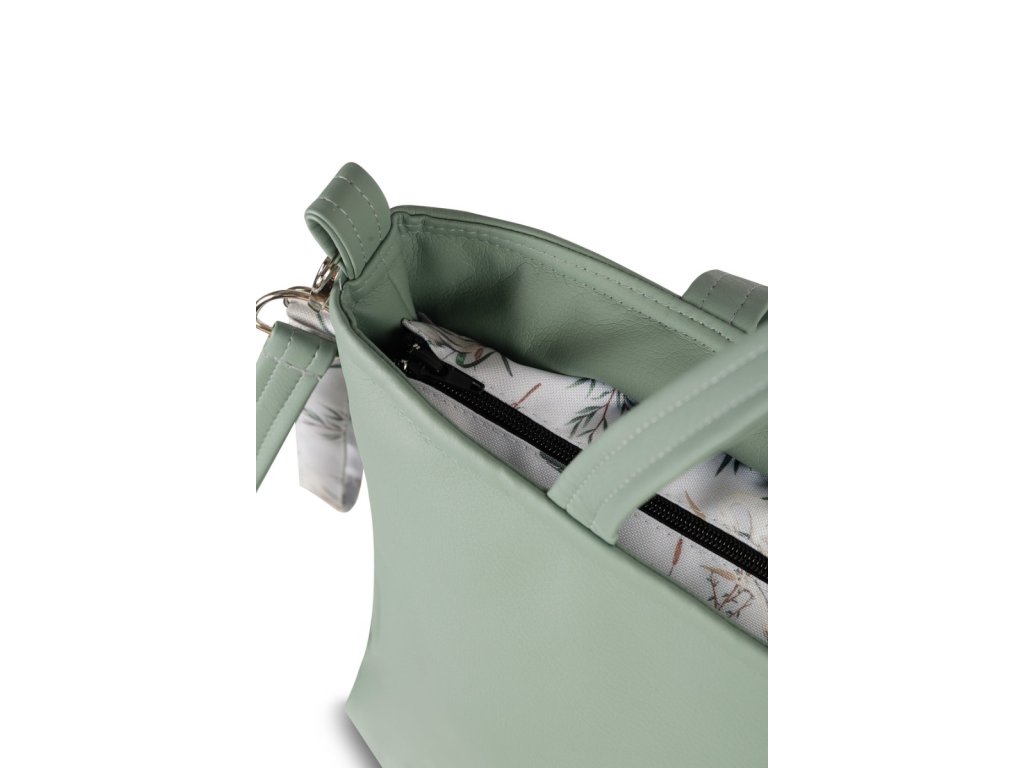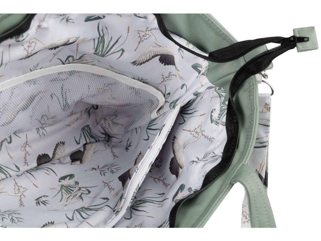 Vnitřní prostor pojme vše důležité – dokumenty, drobnosti i dětské potřeby. Hlavní kapsa na zip ochrání cennosti, zatímco síťované kapsičky umožňují rychlý přístup k drobnostem. Tašku lze díky úchytům snadno připevnit ke kočárku pomocí univerzálních háčků dostupných v obchodech – ideální pro aktivní maminky.