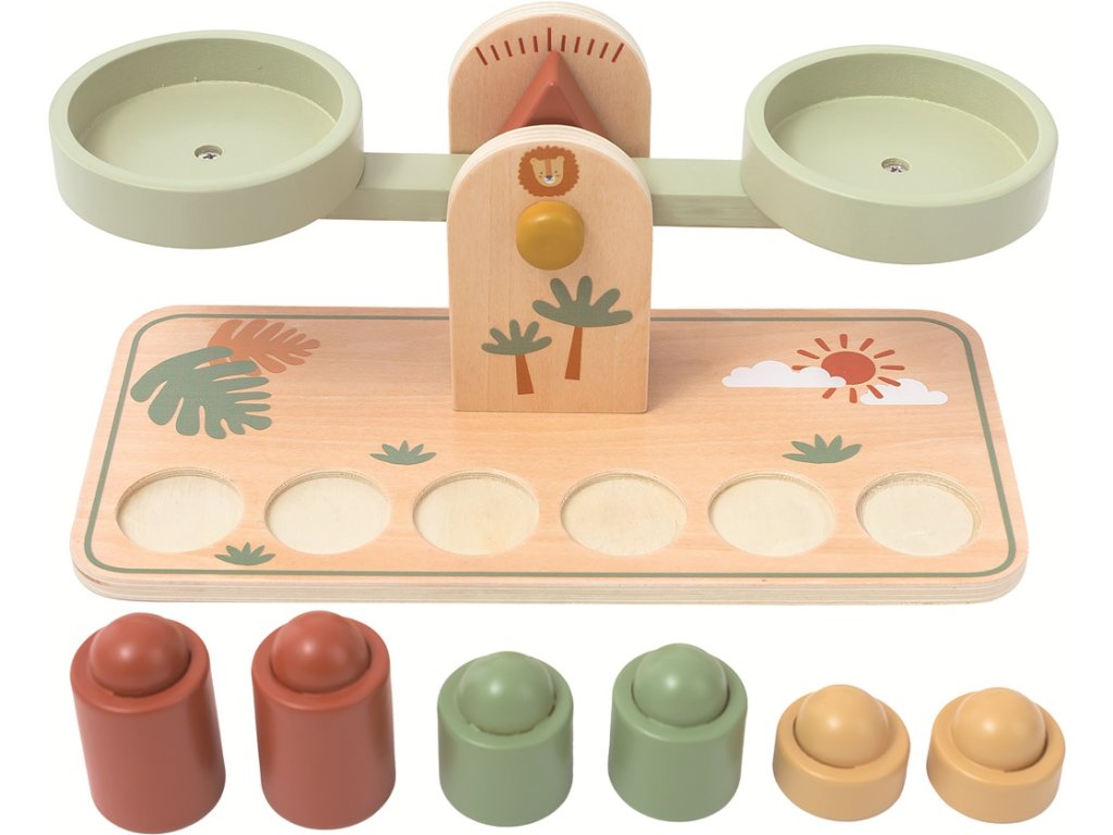 Barevná dětská misková váha v pastelových barvách s motivem safari je skvělou pomůckou pro první objevování světa vážení a porovnávání. Je Inspirována Montessori pedagogikou a podporuje rozvoj logického myšlení a jemné motoriky. Díky šesti závažím o třech různých hmotnostech (vždy po dvou kusech) se děti učí poznávat rozdíly v hmotnosti a samy zkoumají, který předmět je těžší či lehčí. Je těžší plyšák nebo panenka? Porovnávejte hmotnosti hraček v dětském pokojíčku nebo drobných předmětů v domácnosti. Váha je ideální pro hravé učení doma i ve školce.