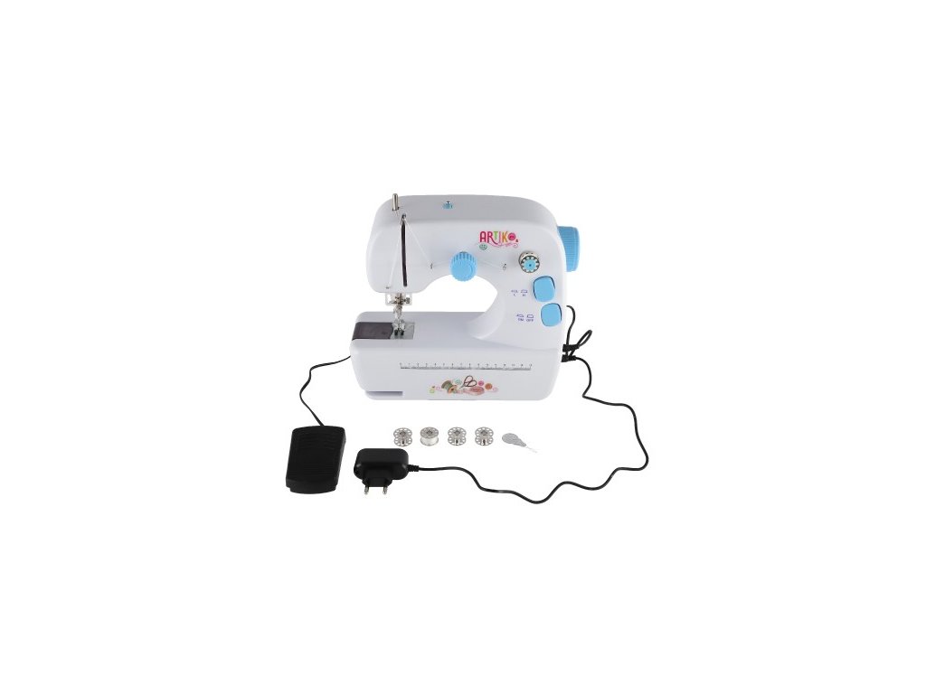 Šicí stroj umožňuje malým švadlenkám vstoupit do světa modních trendů a objevování této fantastické ruční práce. Tento model šicího stroje má kovové konstrukce, cívky, nitě, ale hlavně má plastový ochranný kryt jehly. Má 2 rychlosti šití, osvětlení a je určen na občasné šití, ale je plnohodnotný. Napájení stroje je buď pomocí tužkových baterií, nebo je součástí balení externí zdroj napájení.Doplňky součástí balení: