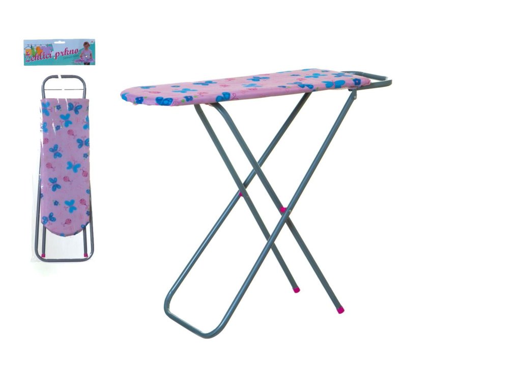 Dětské žehlicí prkno s kovou konstrukcí pro malé holčičky, které by rády pomáhaly mamince v domácnosti. Pouze žehlicí prkno bez žehličky.Rozměry prkna 61 x 51 x 19 cm. Baleno v sáčku.