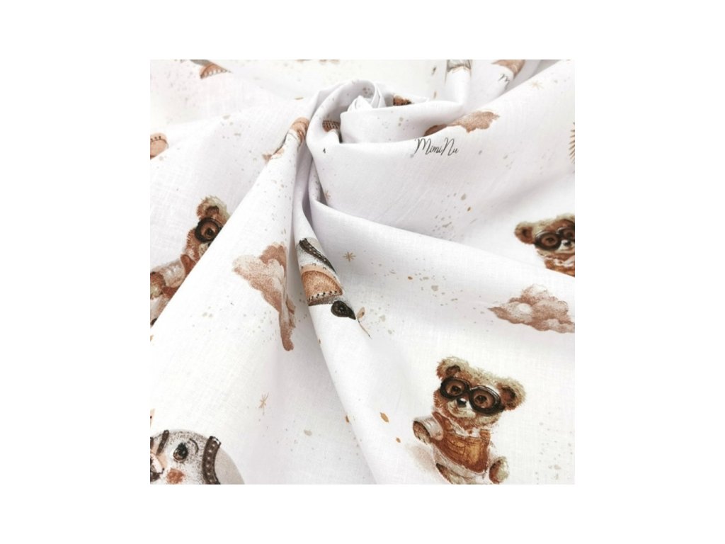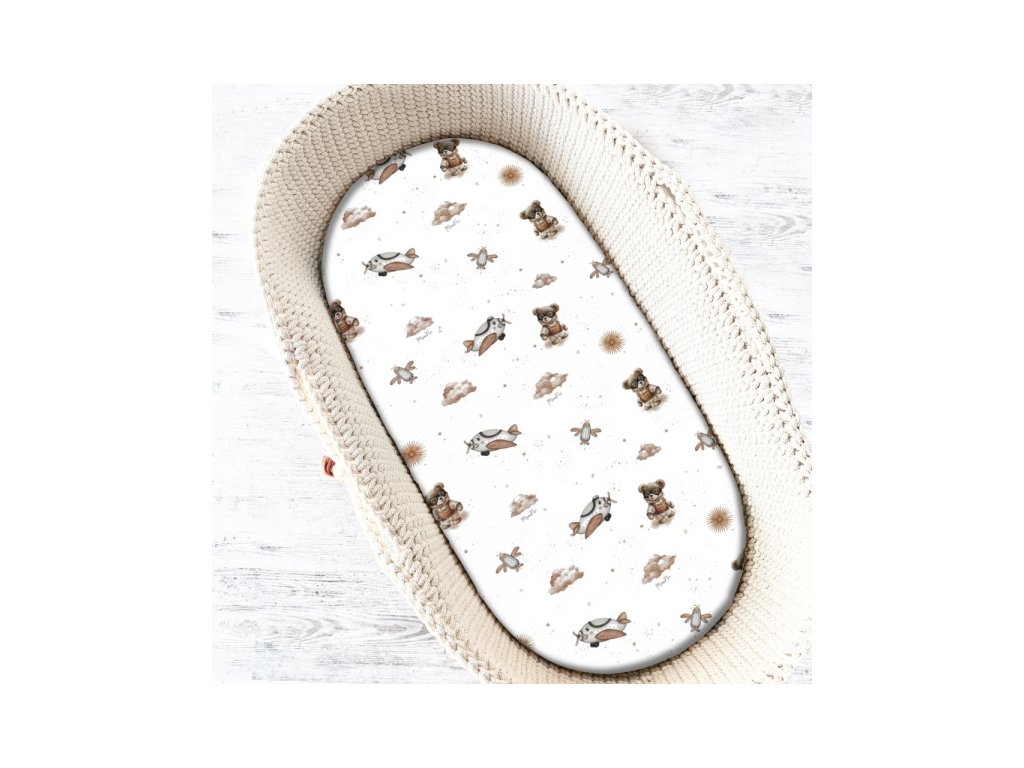 Prostěradlo do kočárku, koše, bavlna, Méďa pilot - bílá, béžová