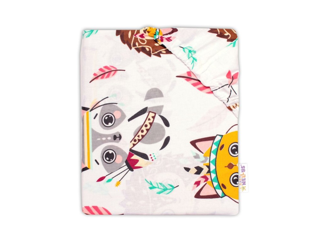Baby Nellys bavlněné prostěradlo do postýlky Ježek a liška - bílá
