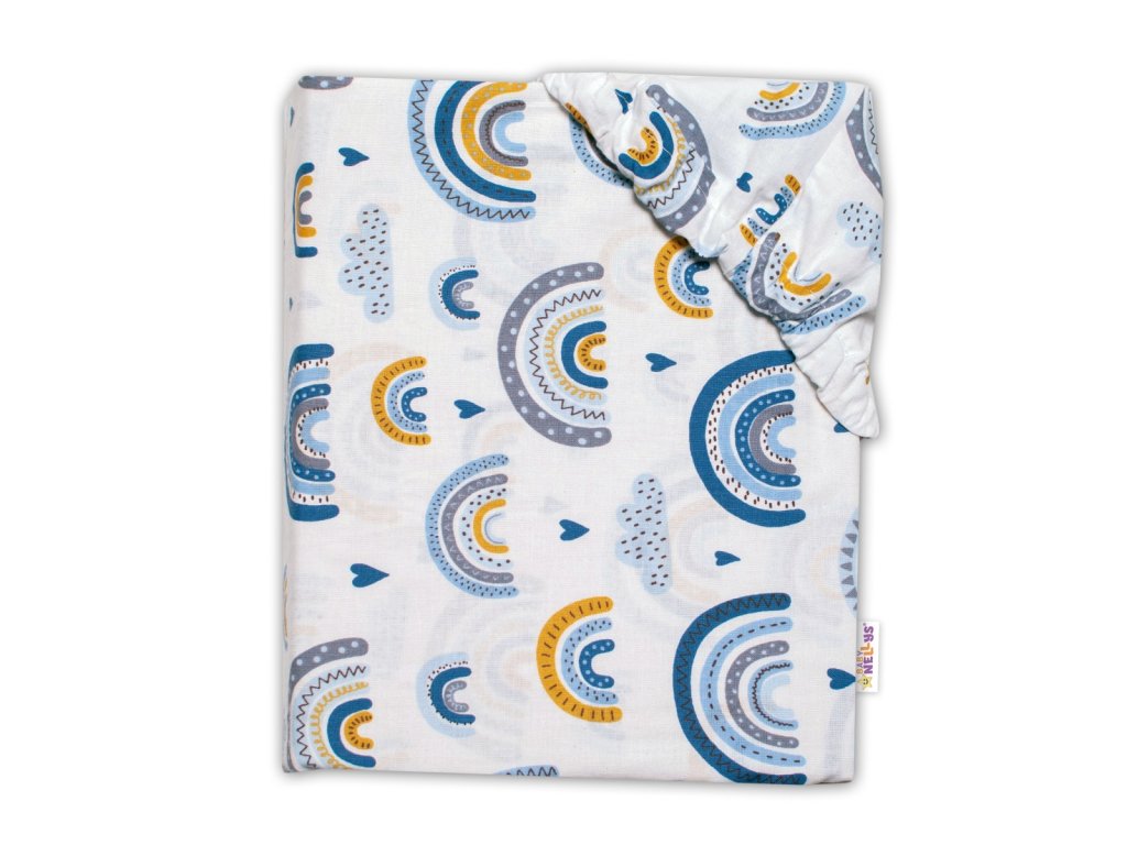 Baby Nellys Bavlněné prostěradlo - Duha, modrá, pastel