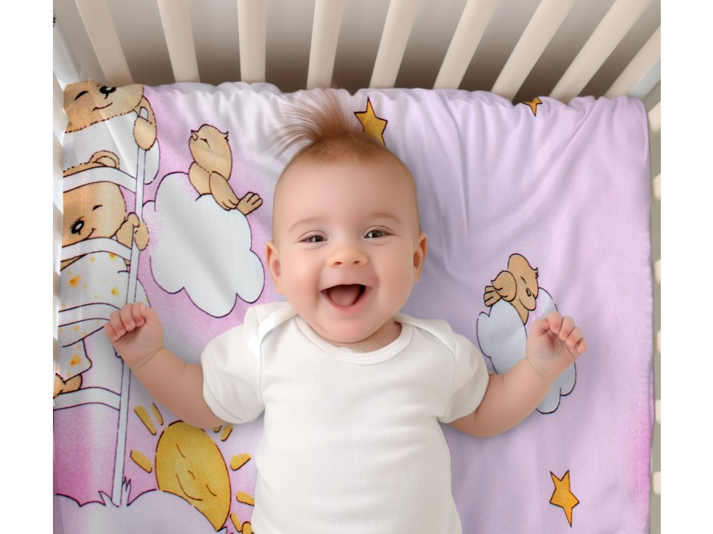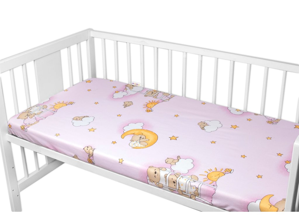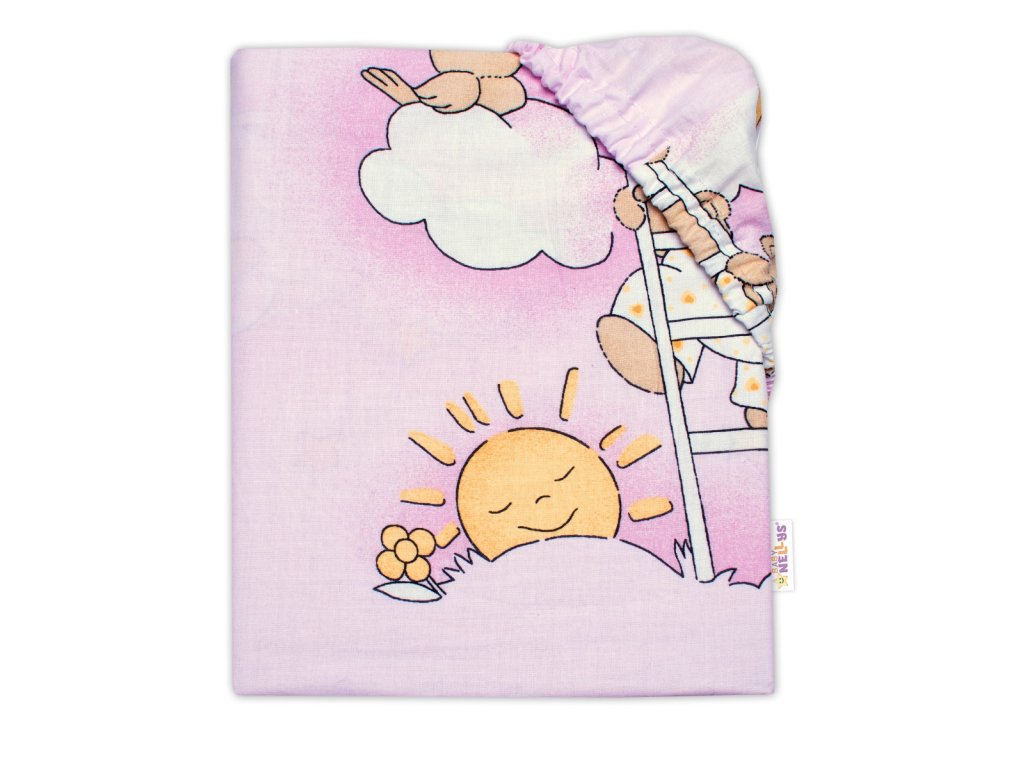 Prostěradlo do postýlky, bavlna Premium, Medvídek na žebříku, růžové