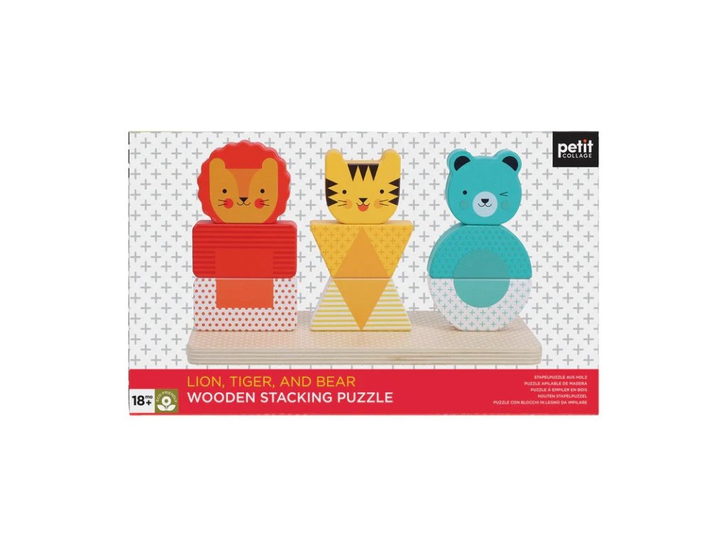 Petit Collage Dřevěné skládací puzzle lev, tygr a medvěd