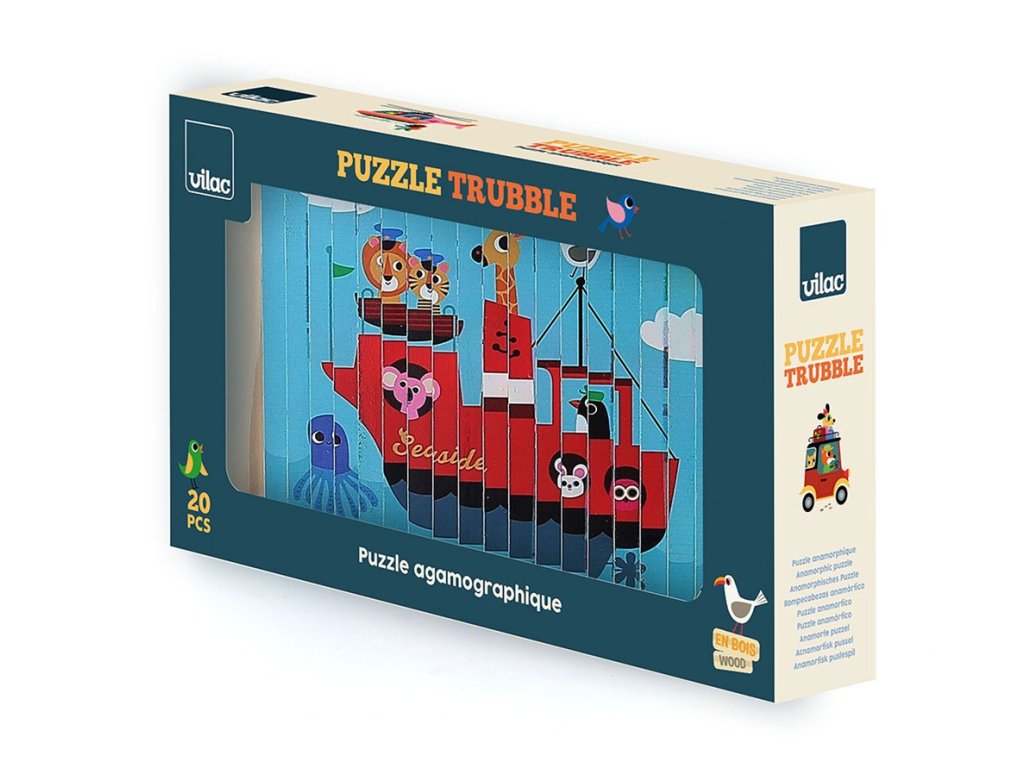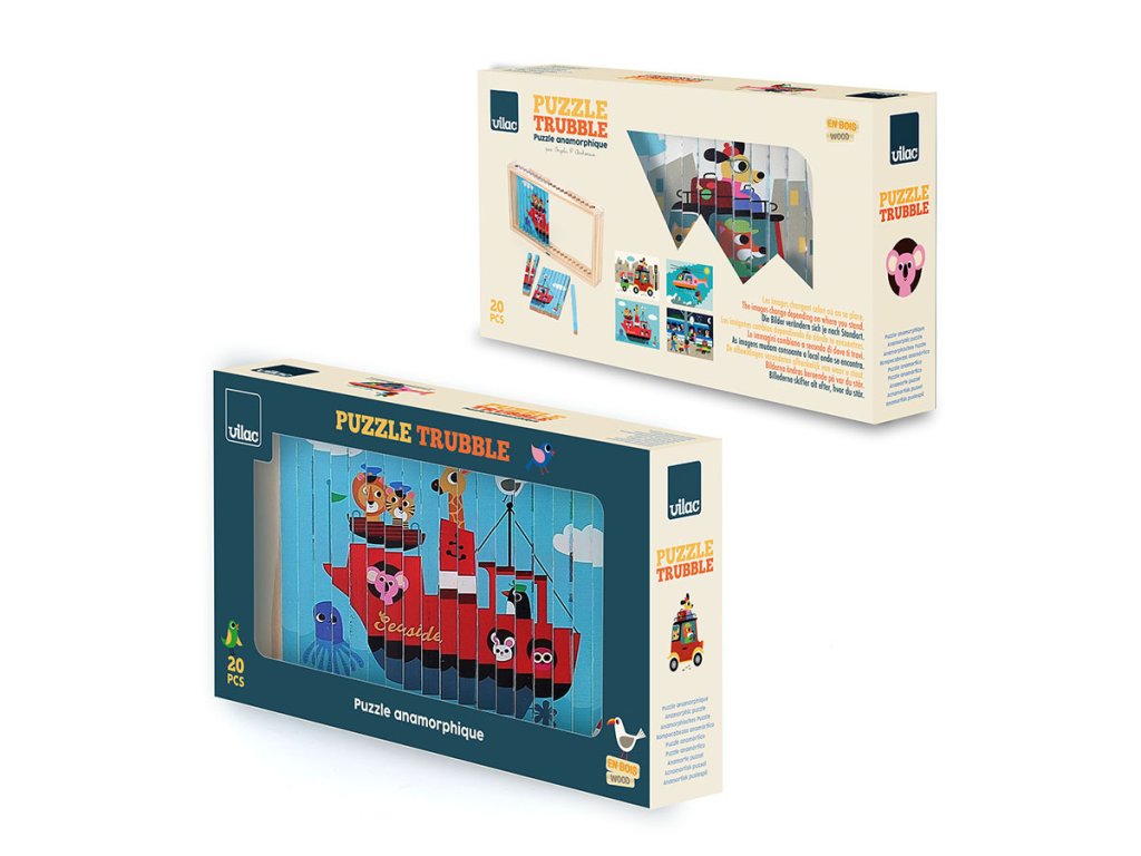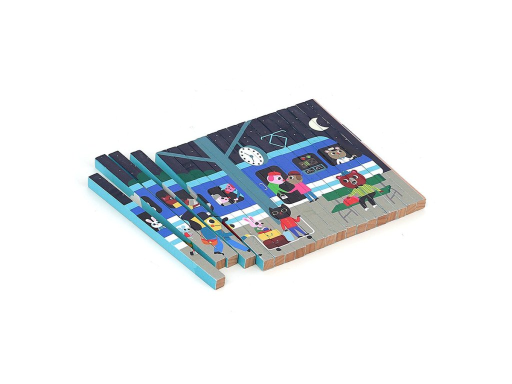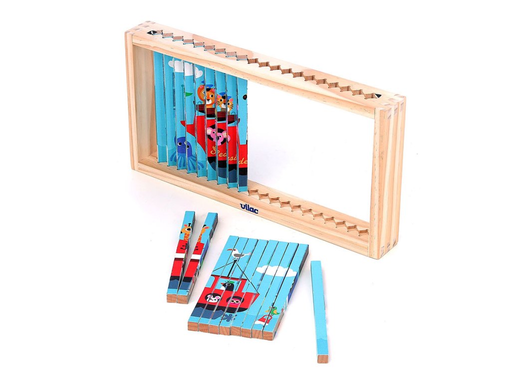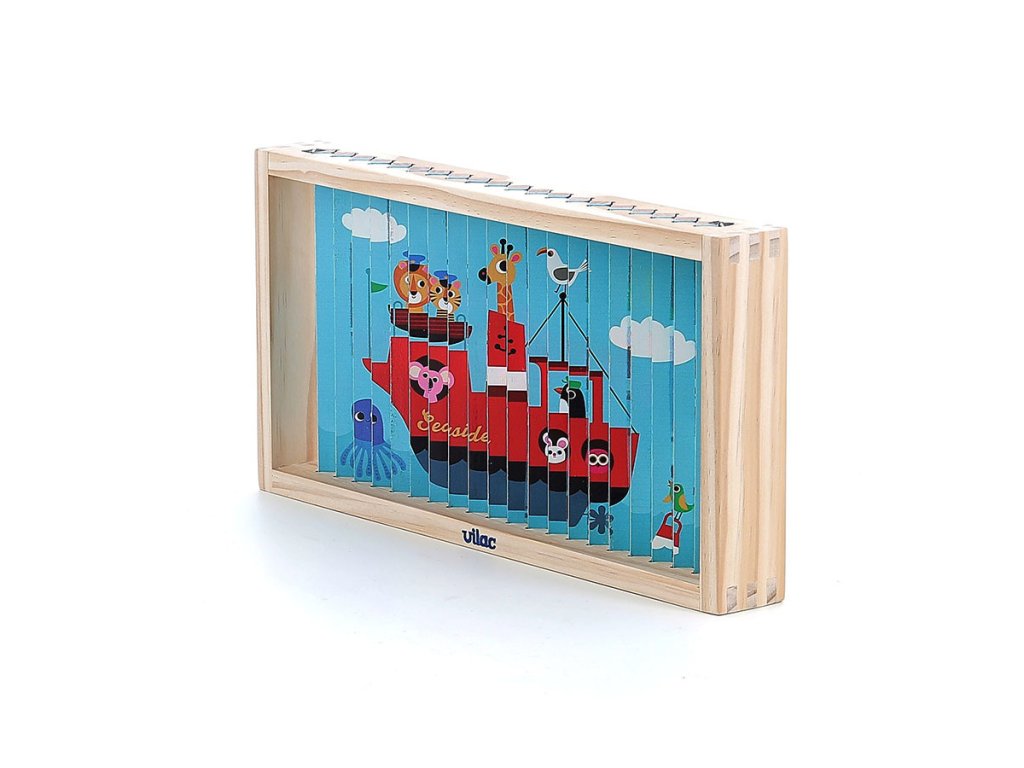 Nakloním se doleva a vidím auto. Nakloním se doprava a objeví se vrtulník. Celkem čtyři různé ilustrace se ukrývají v jedné chytré skládačce – auto, loď, vrtulník a vlak. Čtyřrozměrná dřevěná skládačka, nádherně ilustrovaná Ingelou P. Arrhenius, je ideální hračkou pro rozvoj logického myšlení a pozorovacích schopností dětí. Pomocí malých dřevěných tyčinek, které se zasouvají do rámečku, dítě objevuje čtyři různé obrázky podle úhlu pohledu. Tento inovativní přístup povzbuzuje dítě k pozornému sledování detailů a k pochopení toho, jak se jednotlivé části spojují do celkového obrazu. Manipulace s tyčinkami podporuje soustředění, logické uvažování a přispívá k rozvoji kognitivních schopností, a to vše formou zábavy. Skládačka je zároveň výborným prostředkem pro trénink jemné motoriky. Při zasouvání dřevěných tyčinek do podložky se dítě učí přesnému ovládání pohybů a rozvíjí koordinaci ruka-oko. Každý pohyb vyžaduje soustředění a přesnost, což posiluje drobné svaly na prstech a rukou, dovednost, která je důležitá například pro psaní. Skládačka tak nabízí zábavnou aktivitu, která podporuje i fyzický rozvoj dítěte. Díky originálním ilustracím Ingely P. Arrhenius je tato čtyřrozměrná skládačka skvělým nástrojem pro podporu dětské fantazie. Objevováním obrázků z různých úhlů se dítě učí vnímat svět z nových perspektiv a má příležitost vymýšlet vlastní příběhy. Tato vzdělávací hra rozvíjí nejen logické myšlení, ale i slovní zásobu a kreativitu. Jde o komplexní hračku, která spojuje přemýšlení, motoriku i představivost, ideální pro společné chvíle s rodinou.