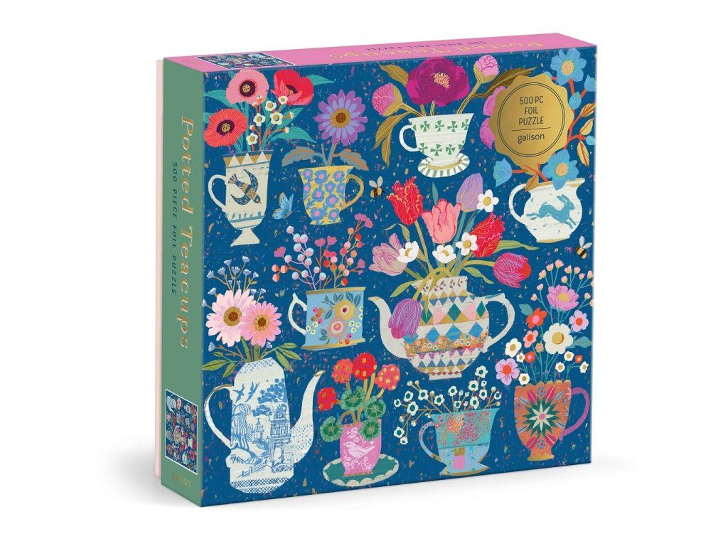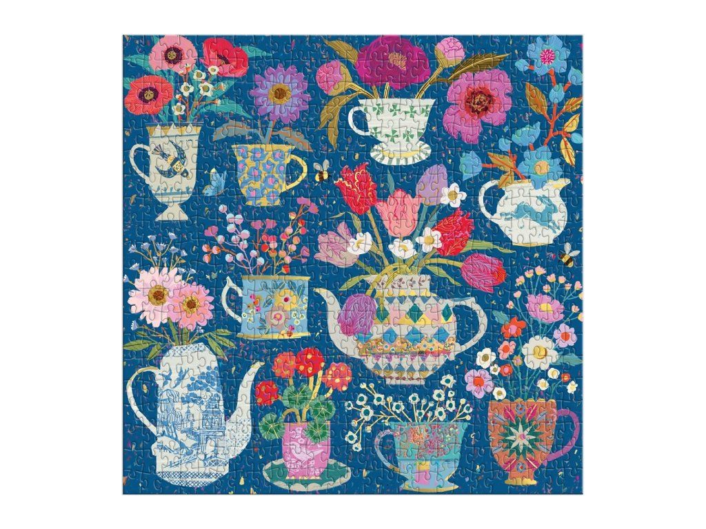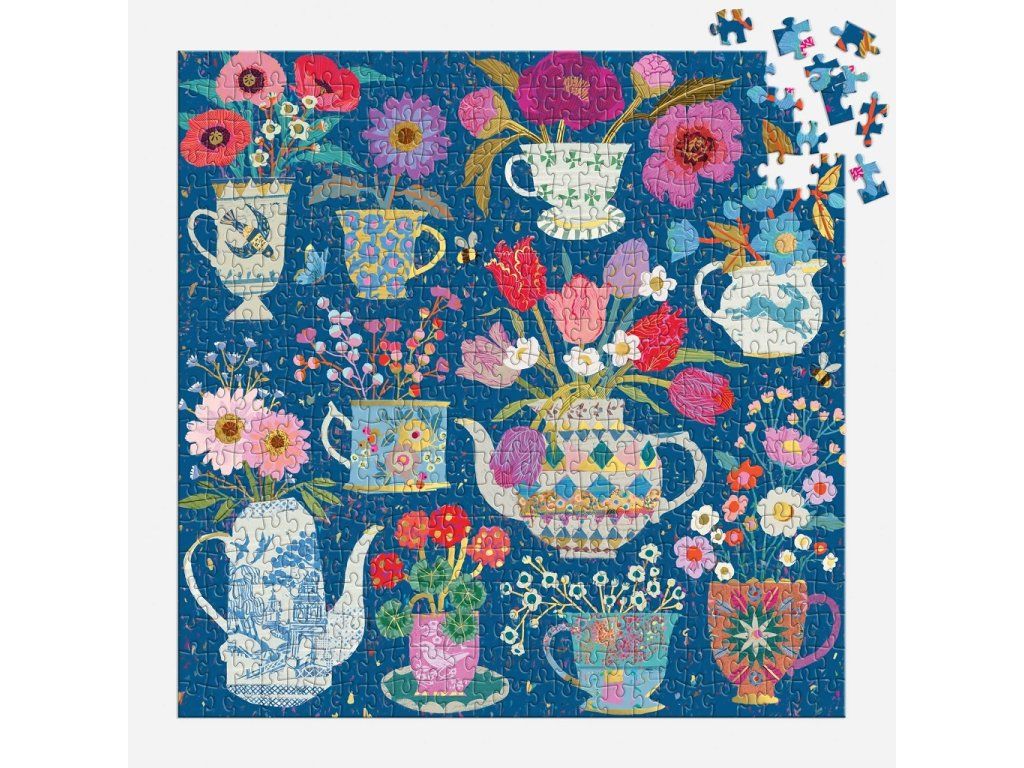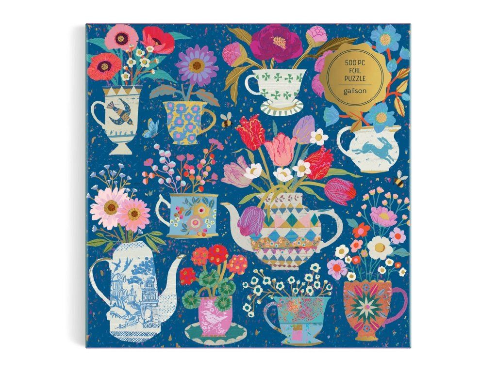 Galison Fóliové puzzle Victoria Ball Šálky s květinami 500 dílků