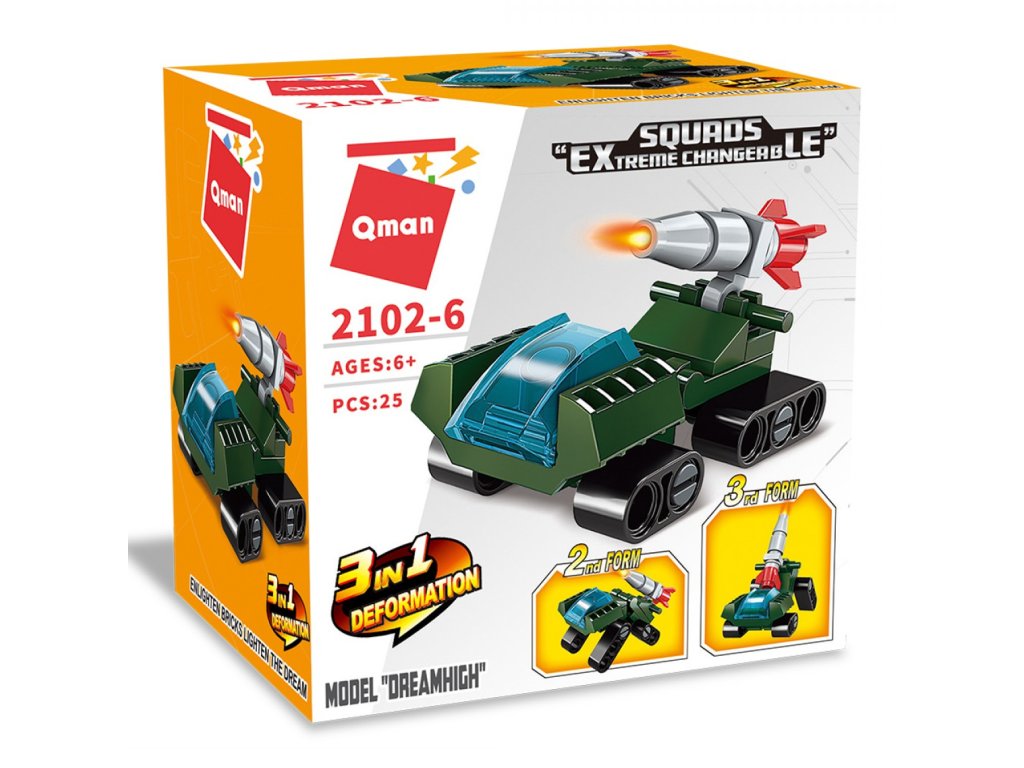 Stavějte a přestavujte! Ministavebnice nabízí trojici možností sestavení. Zkusíte přijít s vlastní kombinací? Vysoce variabilní stavebnice Qman z pestrobarevných plastových kostiček lze kombinovat s podobnými stavebnicemi mnoha dalších významných výrobců. Vyrobeno z kvalitního, nezávadného a odolného ABS plastu. Baleno v pestře potištěné papírové krabičce.