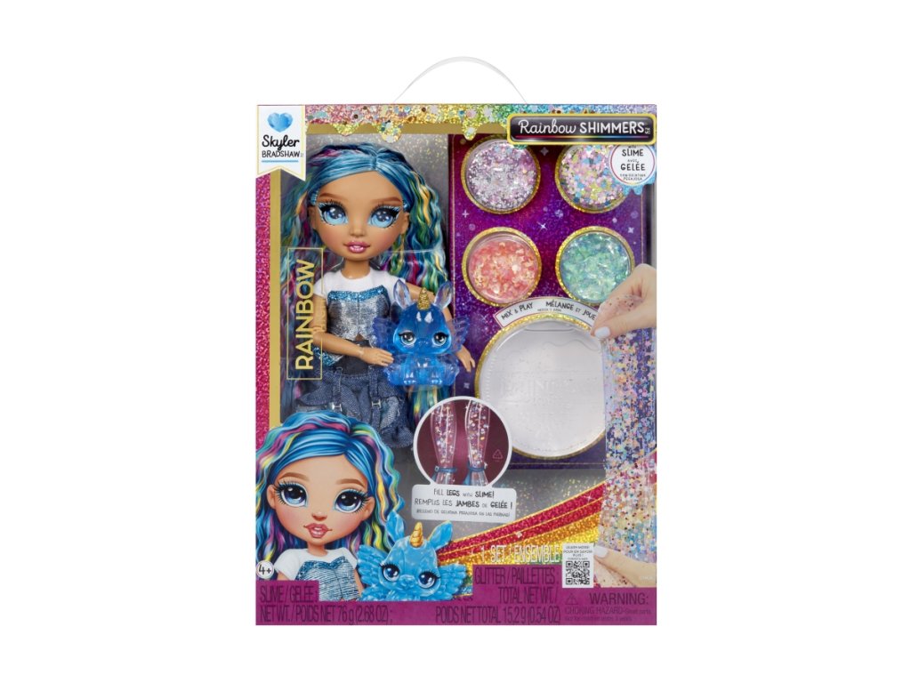 Rainbow High panenky jsou ještě kouzelnější! Společně se svými malými sestřičkami objevují nový svět, nové outfity a zcela nový způsob hraní. Každá panenka přichází s průhledným slizem a čtyřmi druhy třpytek. Třpytky přidej do slizu a uprav ho podle své fantazie. Poté sliz dej do průhledných nohou panenky a sleduj, jak se její nohy promění! Je to tak snadné! Sundej zadní část nohou, přidej sliz, zacvakni nohy zpět a můžeš si hned hrát! A to nejlepší? Můžeš to dělat znovu a znovu. Nebo můžeš třpytky a sliz kombinovat mezi různými panenkami. Obsah balení: panenka Skyler s dlouhými vlásky a 5 klouby, 1 outfit, 1 pár bot, 1 pár náušnic, průhledný sliz, 4 druhy třpytek, 1 kouzelný mazlíček. Doporučený věk 4+Doplňkové parametry