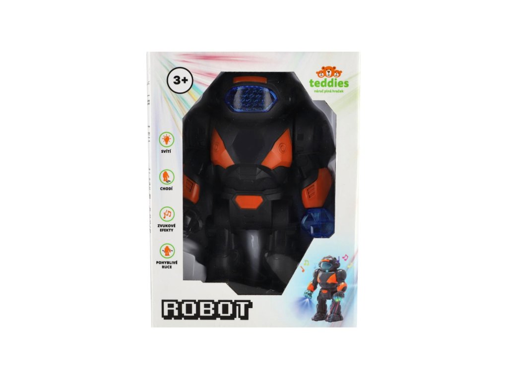 Robot se aktivuje jednoduchým spuštěním a oživí každou hru – ať už bojuje proti vetřelcům nebo hlídá vesmírnou základnu. Ideální pro domácí dobrodružství plné technologií. Tento plastový robot o výšce 22 cm dokáže chodit, svítit a vydávat robotické zvuky.Rozměry balení 18 x 25 x 9 cm