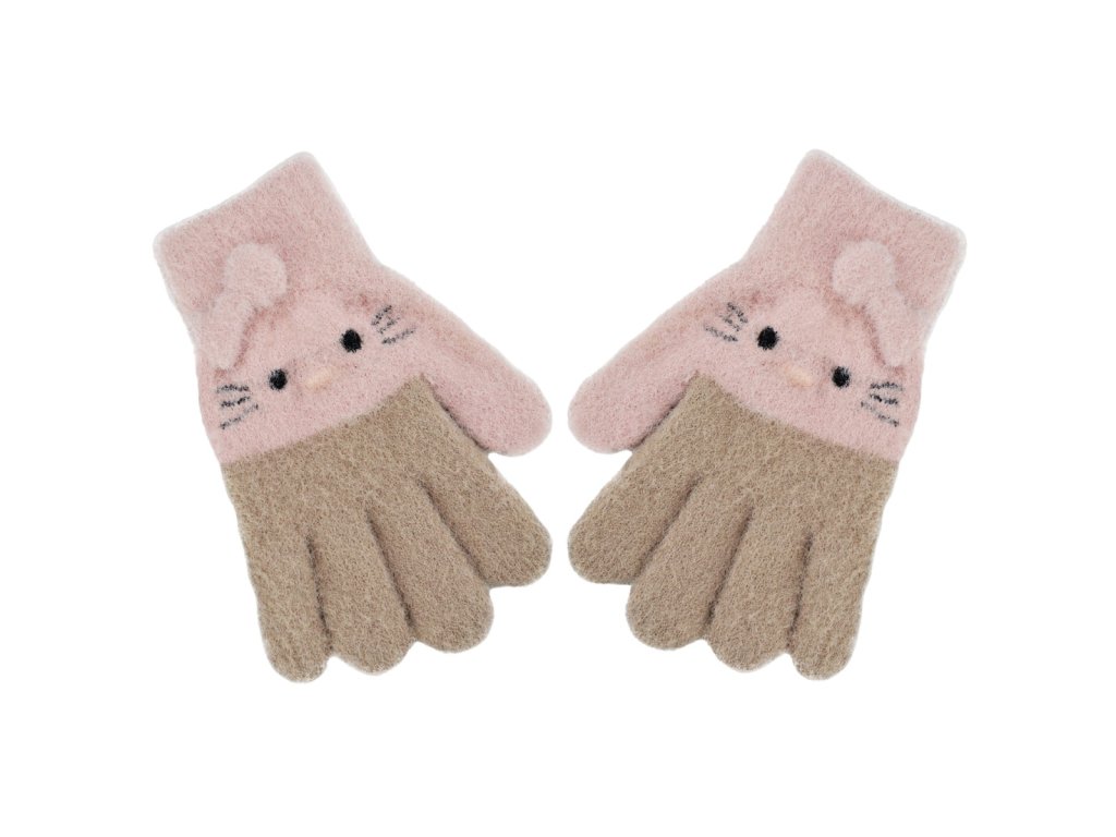 Dětské zimní prstové rukavičky Kitty, 12cm, růžová, béžová