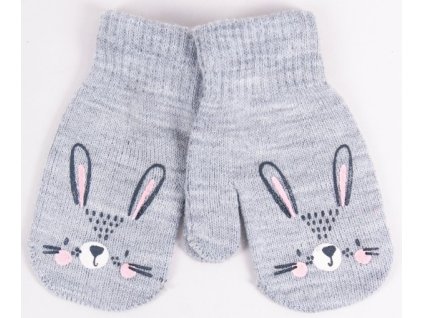 YO! Zimní dívčí rukavičky se šňůrkou Králíček - šedé