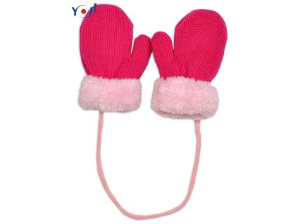 Zimní kojenecké rukavičky s kožíškem - se šňůrkou YO - malinové/růžový kožíšek