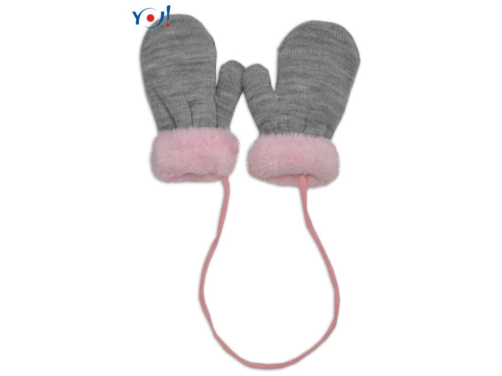 Zimní kojenecké rukavičky s kožíškem - se šňůrkou YO - šedé/růžový kožíšek
