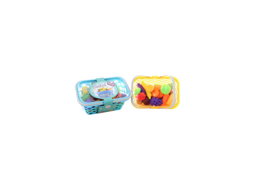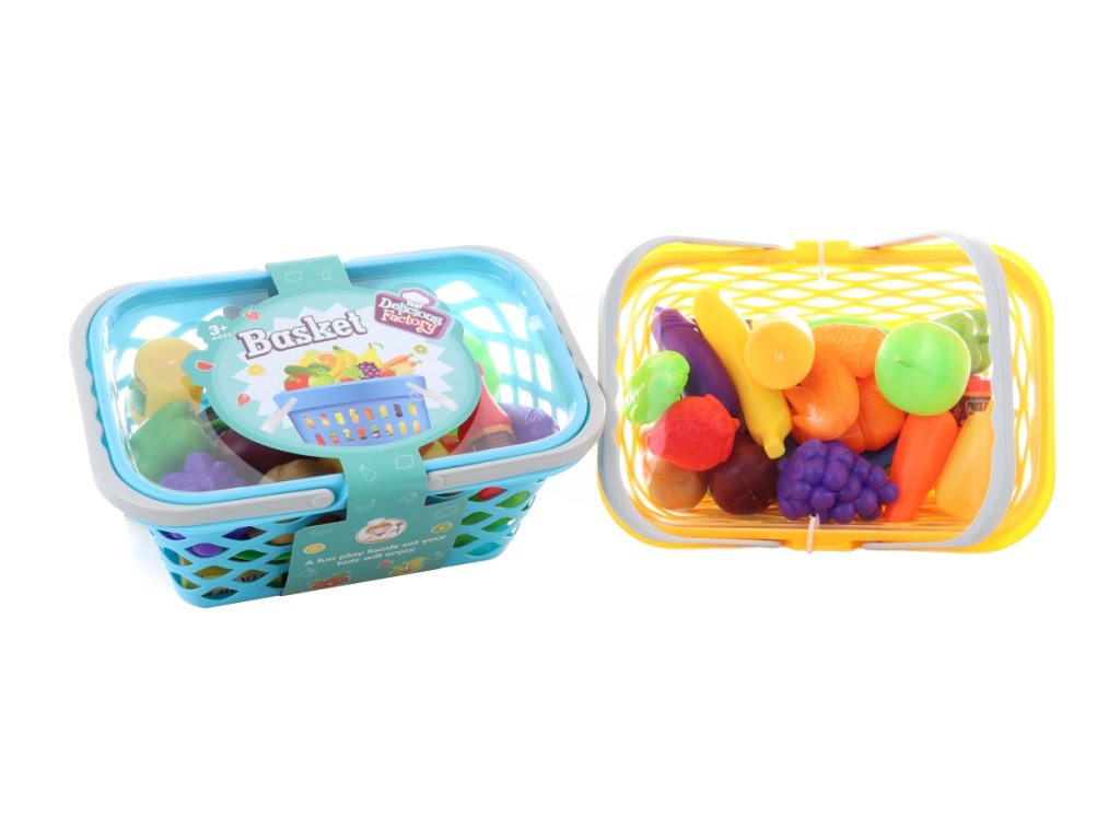 Plastová sada košíku s potravinami. Košík má držadla, takže může zároveň sloužit jako nákupní. Balení obsahuje různé druhy ovoce a zeleniny, dochucovadla, krabičku s kávou a džusem, talířek a příbor. Rozměry balení vva 26,5x12x17 cm. Věk 3+Doplňkové parametry