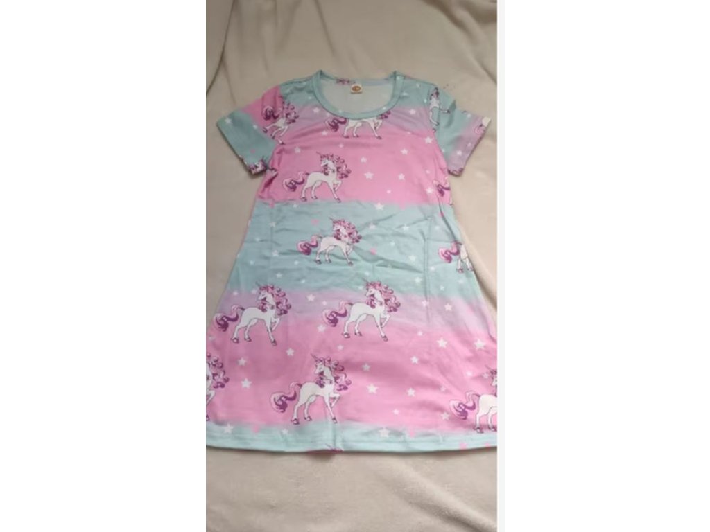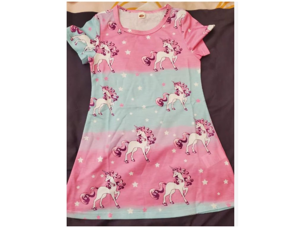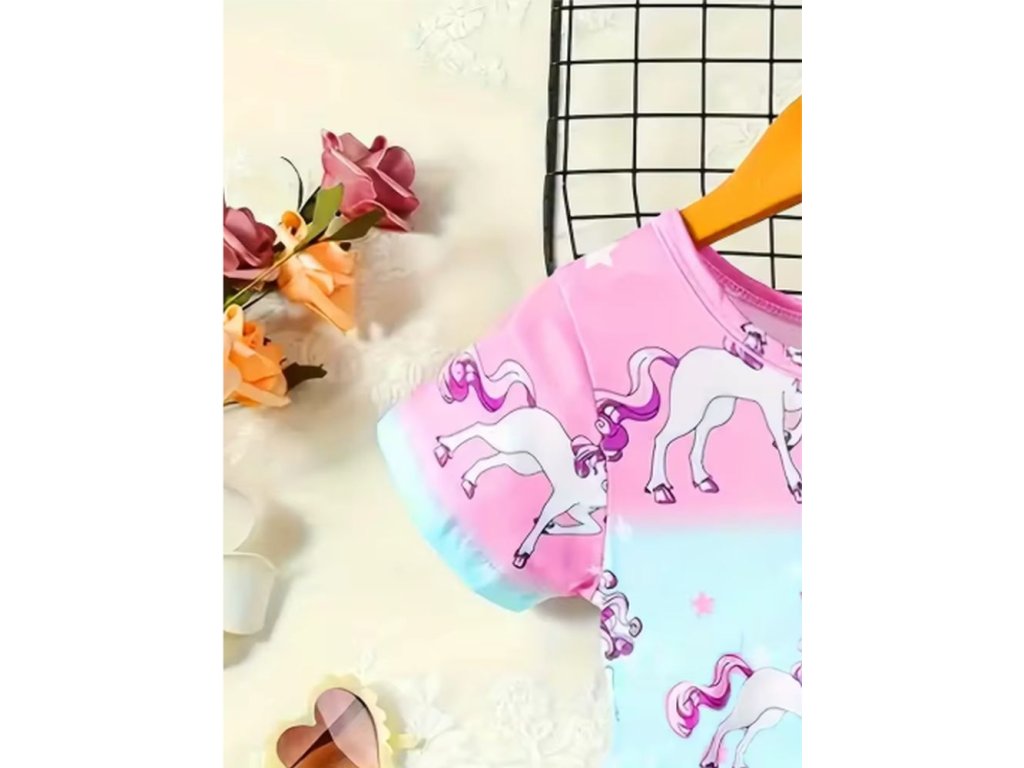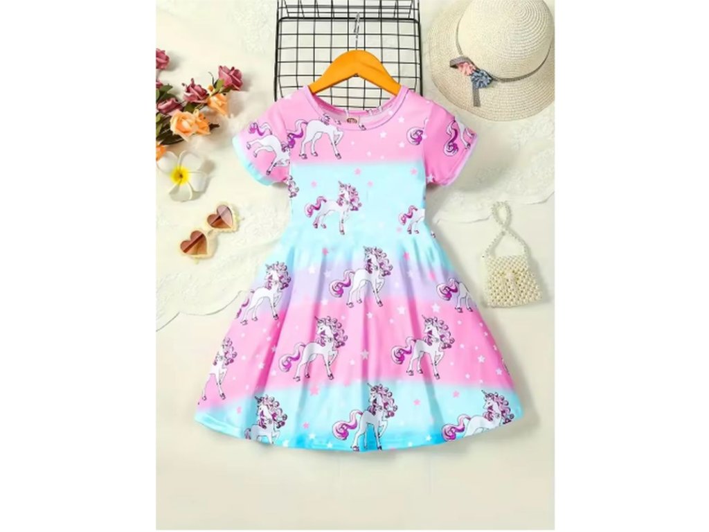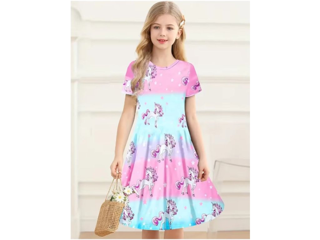 Dívčí letní šaty "jednorožec" s krátkým rukávem - růžovo modré