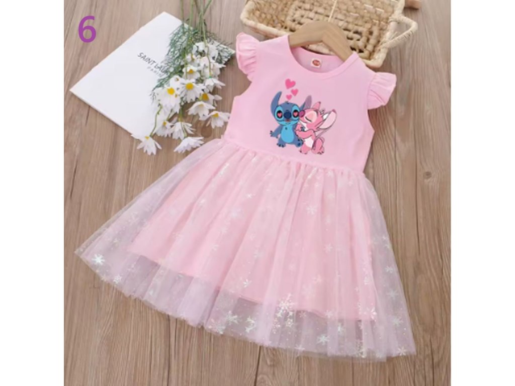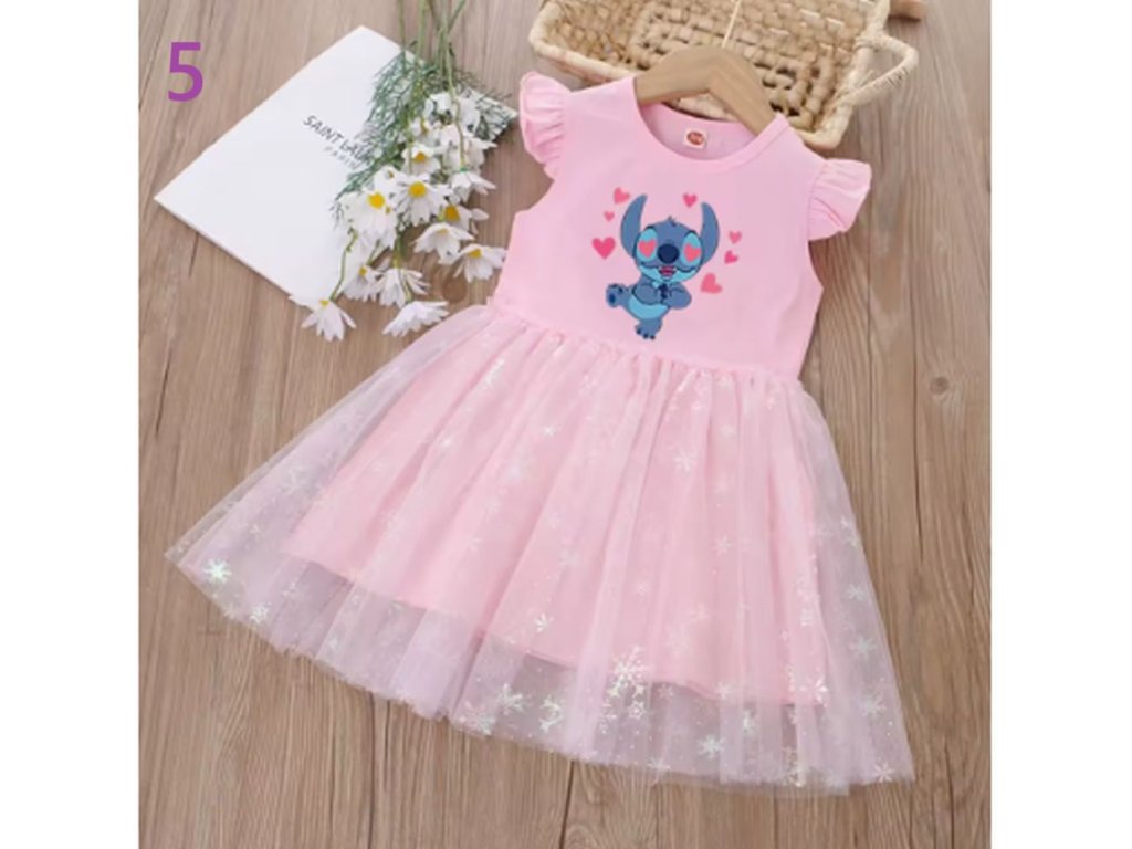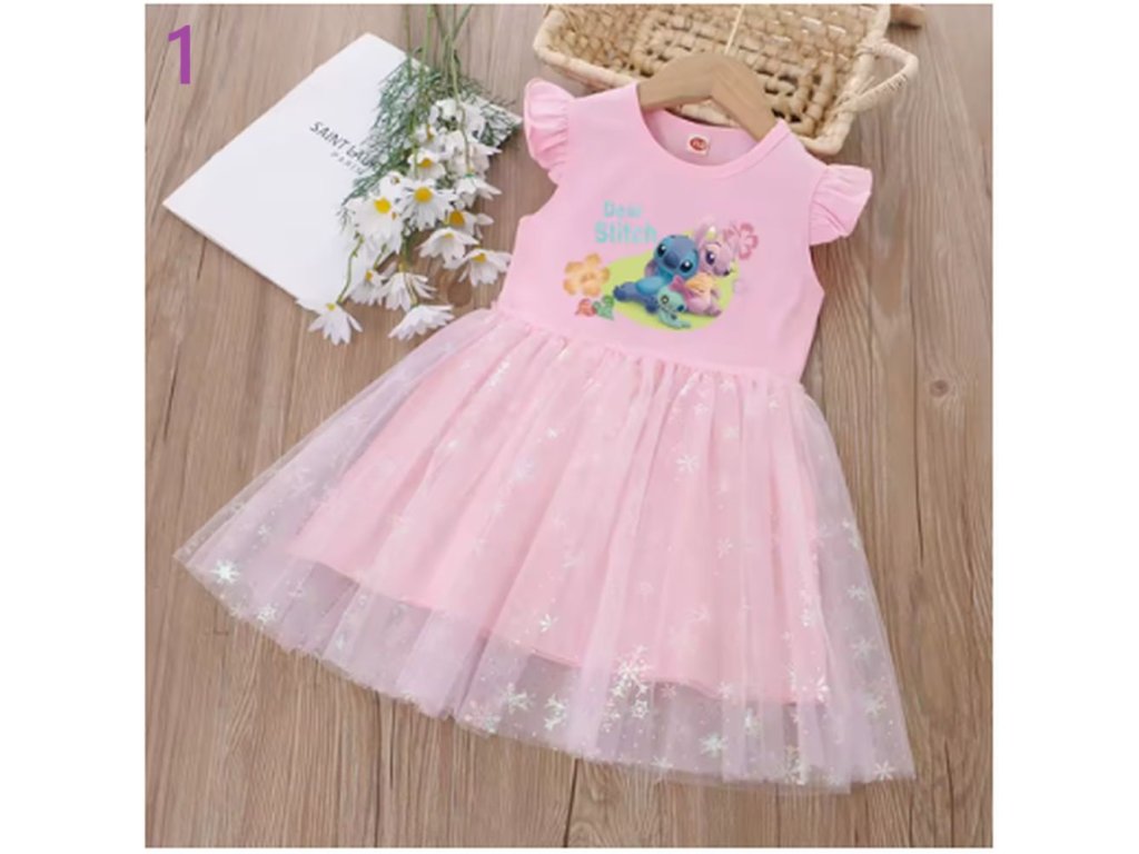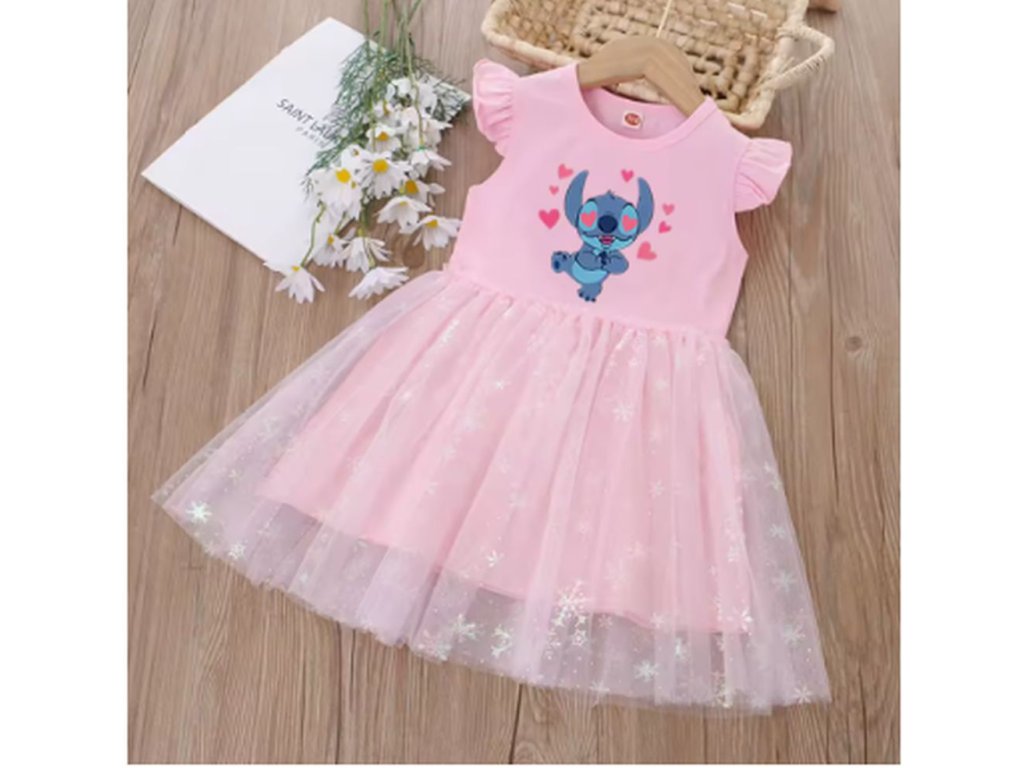 Dívčí šaty "Lilo & Stitch" s volánkovým rukávem a třpytivou sukní - růžové