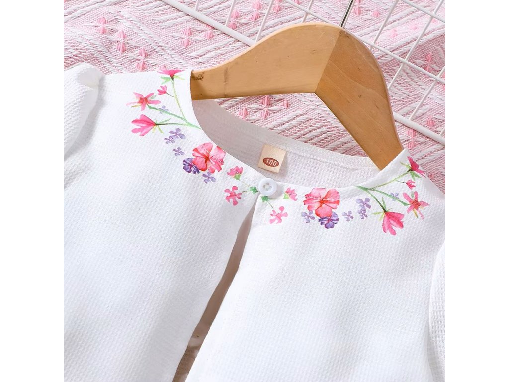 Elegantní dívčí šaty s bolerkem - bílé s květinovým designem