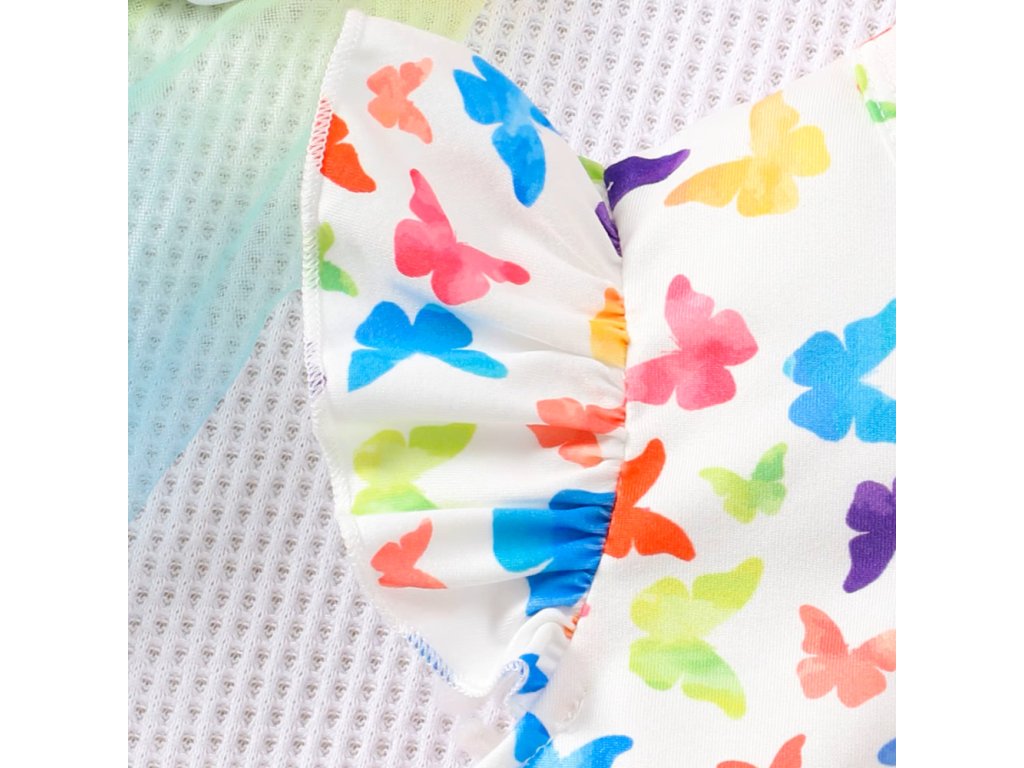 Okouzlující dívčí šaty s motivem Bluey - duhové s motýlky