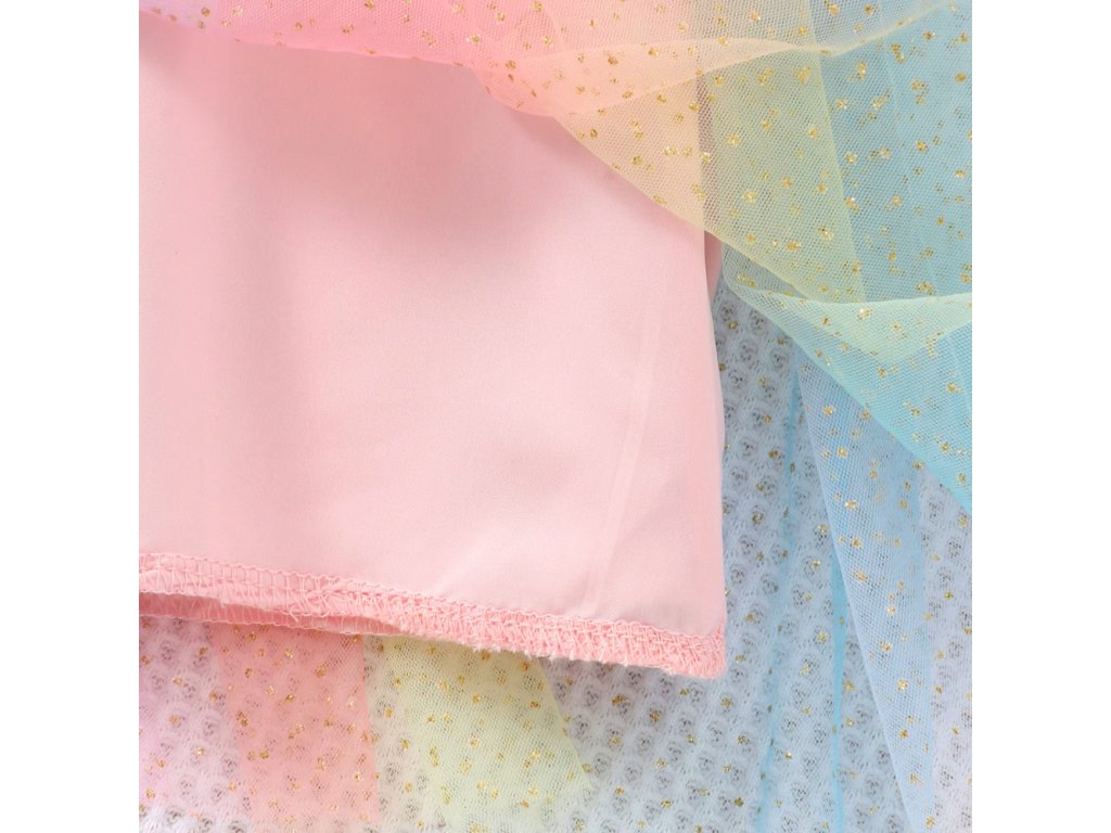 Nádherné dívčí šaty s motivem oblíbené postavičky Bluey. Mají nadýchanou sukni s podšívkou v délce ke kolenům s jemným blýskavými detaily a mašlí v pase. Vrchní díl zdobí motýlci, jemné volánkové rukávky a potisk Bluey. Rozhodně je využijete jak na tematickou párty, oslavu narozenin i na volnočasové nošení. Šaty jsou laděny do duhových odstínů a velikosti jsou dostupné pro dívky ve věku od 2 do 7 let. V nabídce jsou i šaty bez potisku (č.20).