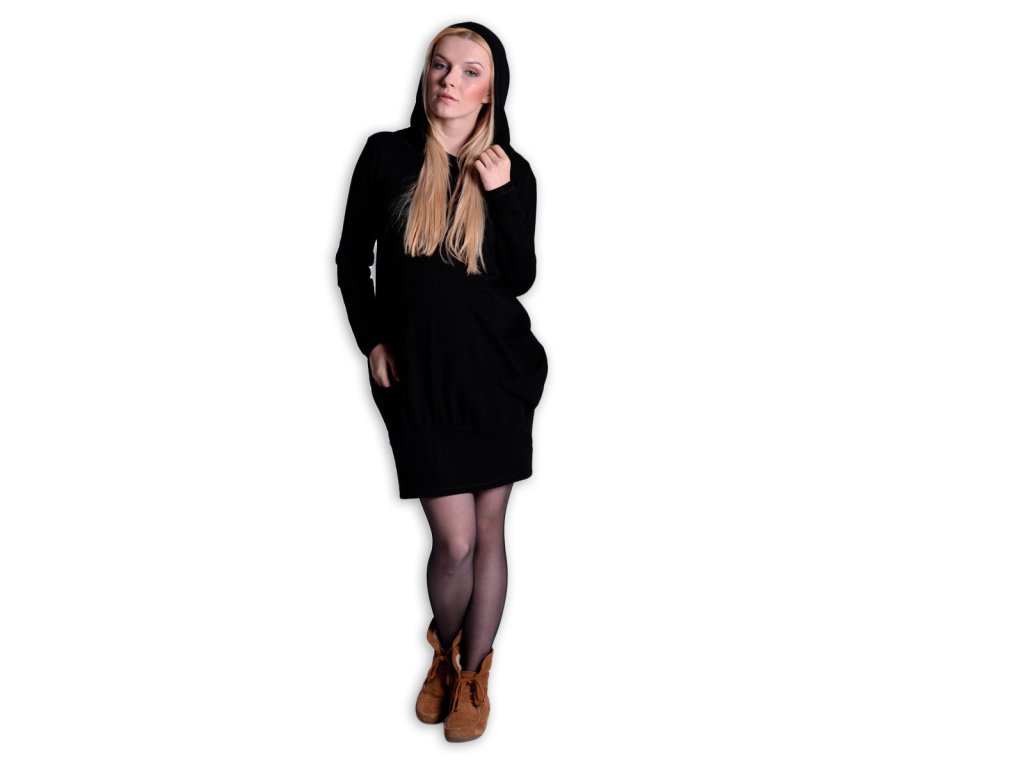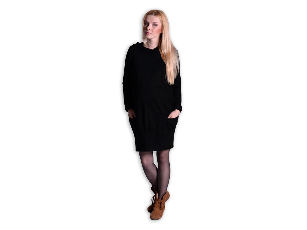 Be MaaMaa Sportovní těhotenské šaty s kapucí - černé