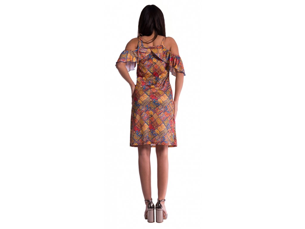 Těhotenské šaty s volánkovými rukávy .Šaty s potiskem aztéckého vzoru.