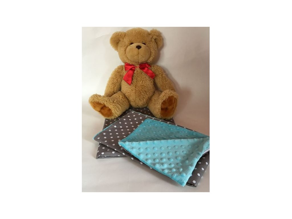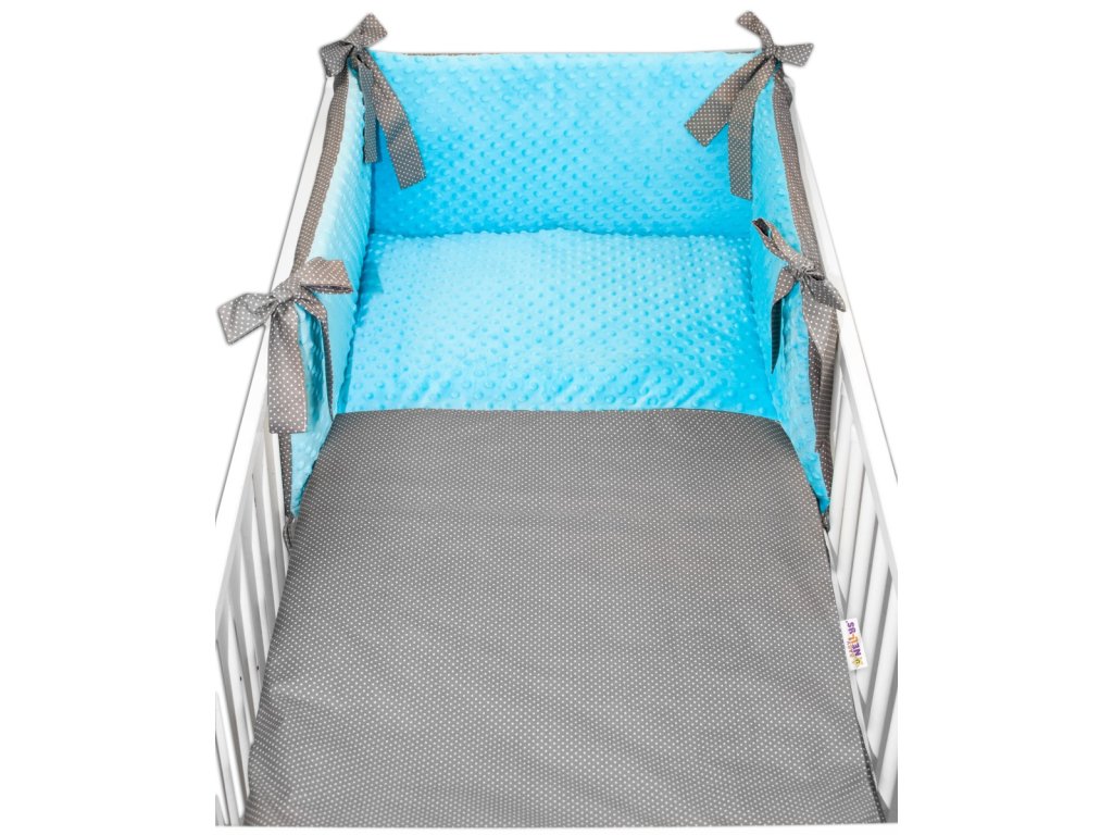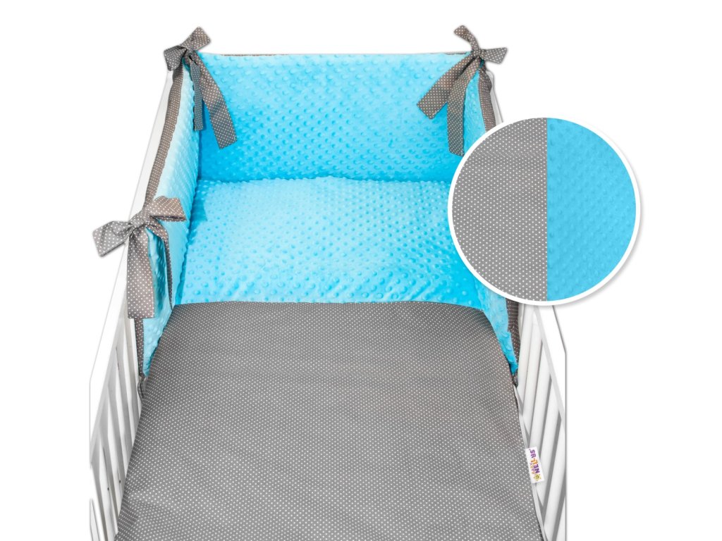 3-dílná sada mantinel s povlečením minky Baby Nellys - Tečky, minky tyrkys/tm. šedá