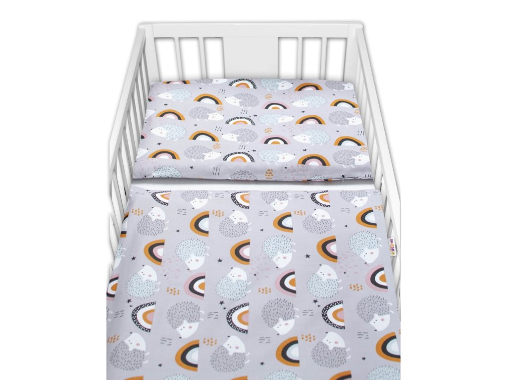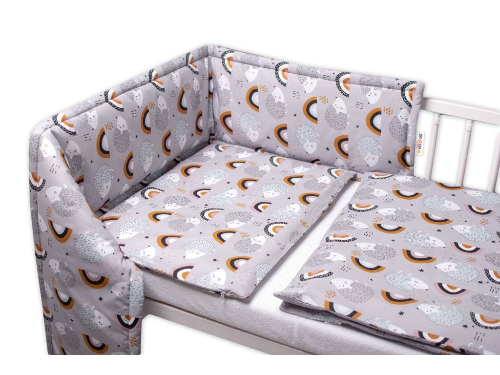 Baby Nellys 3-dílná sada Mantinel s povlečením - Ježek a duha, šedé