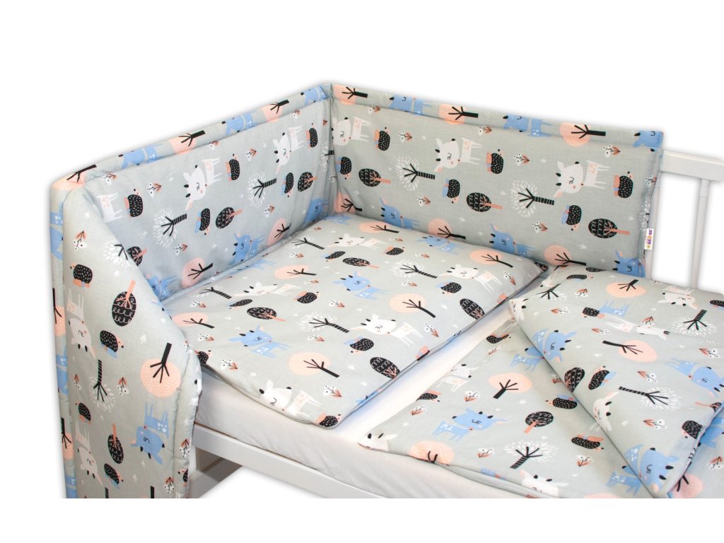 Baby Nellys 3-dílná sada Mantinel s povlečením - Srnečci, šedá