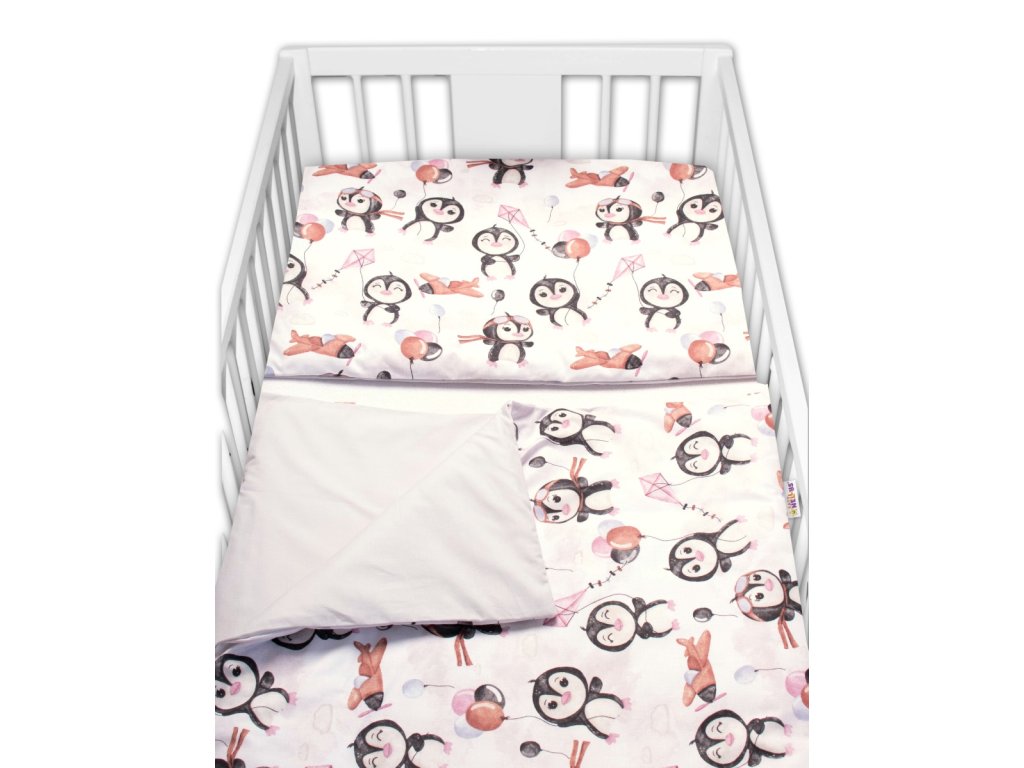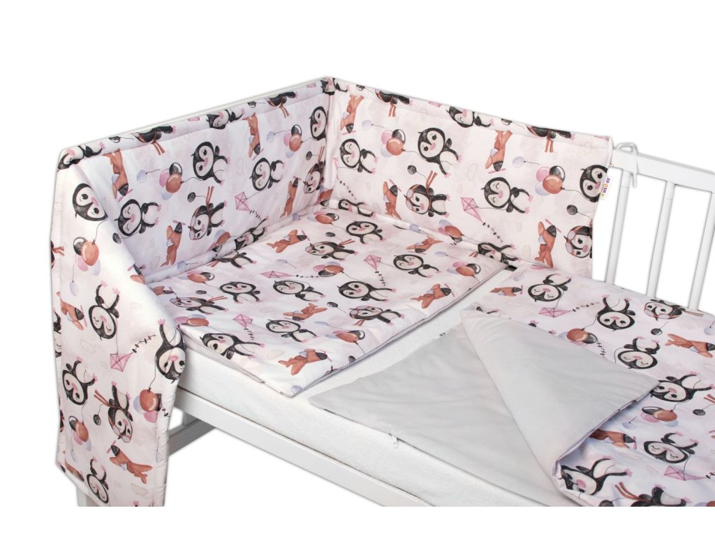Baby Nellys 3-dílná sada Mantinel s povlečením - Tučňáci, bílá/šedá