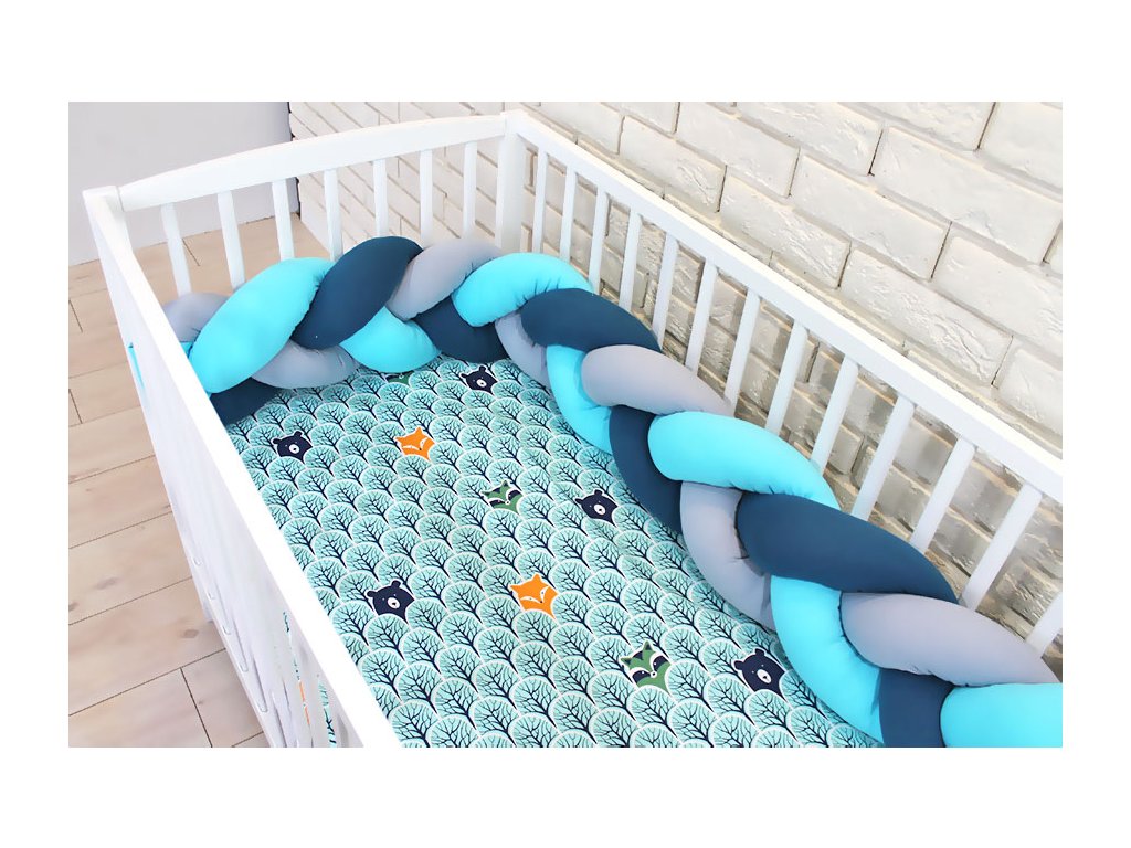 Baby Nellys Mantinel pletený cop s povlečením Lesík - tyrkys, šedá
