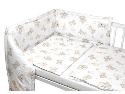 Sada do postýlky Mantinel s povlečením, 3D sada - Malý Medvídek, bílá/béžová, 135x100 cm