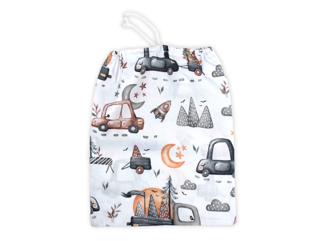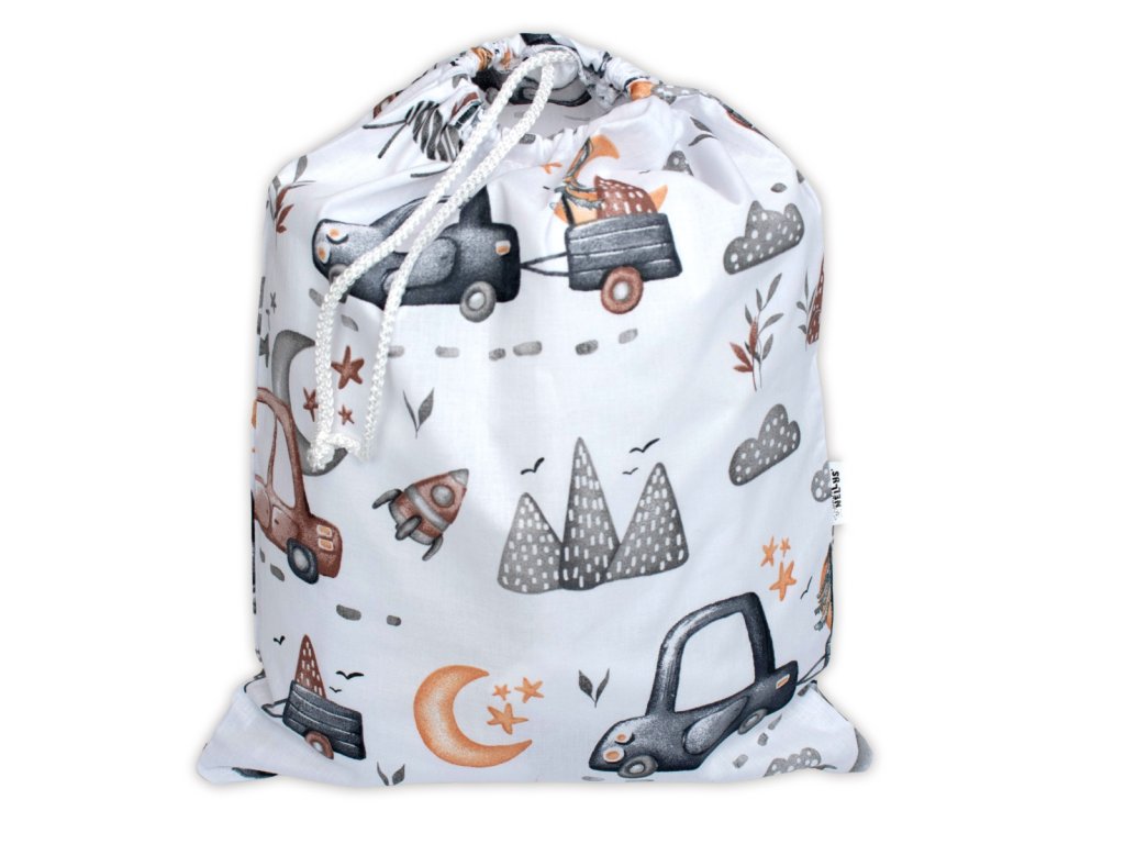 Pytlík na přezůvky 40x32cm, bavlna, Auta - bílá/šedá