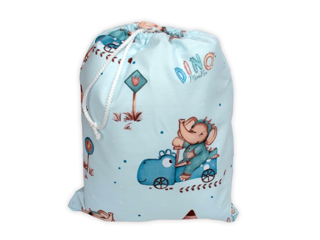 Pytlík na přezůvky 40x32cm, bavlna, Autíčko DINO - modrý
