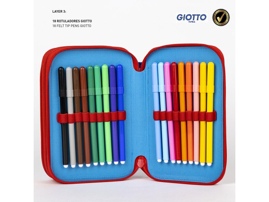 Tříkomorový rozkládací školní penál od španělského výrobce. Penál má 3 přihrádky uzavírané na zip. Ideální pro všechny, kteří mají rádi pořádek ve svém penálu. Každý kus vybavení zde najde své místo. V jedné přihrádce jsou fixy, ve druhé pastelky a ve třetí potřebné školní pomůcky. Veškeré vybavení s prvky označenými logem. Příslušenství fix 16ks pastelky 16ks tužka HB 2ks propiska 2ks guma 1ks ořezávátko 1ks pravítko 1ks nůžky 1ks Materiál 100% polyester Rozměry 12.5 x 19.5 x 6.5 cmUpozornění !