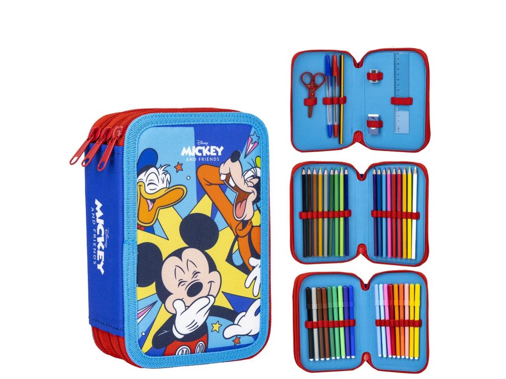 Školní penál třípatrový s náplní Myšák Mickey