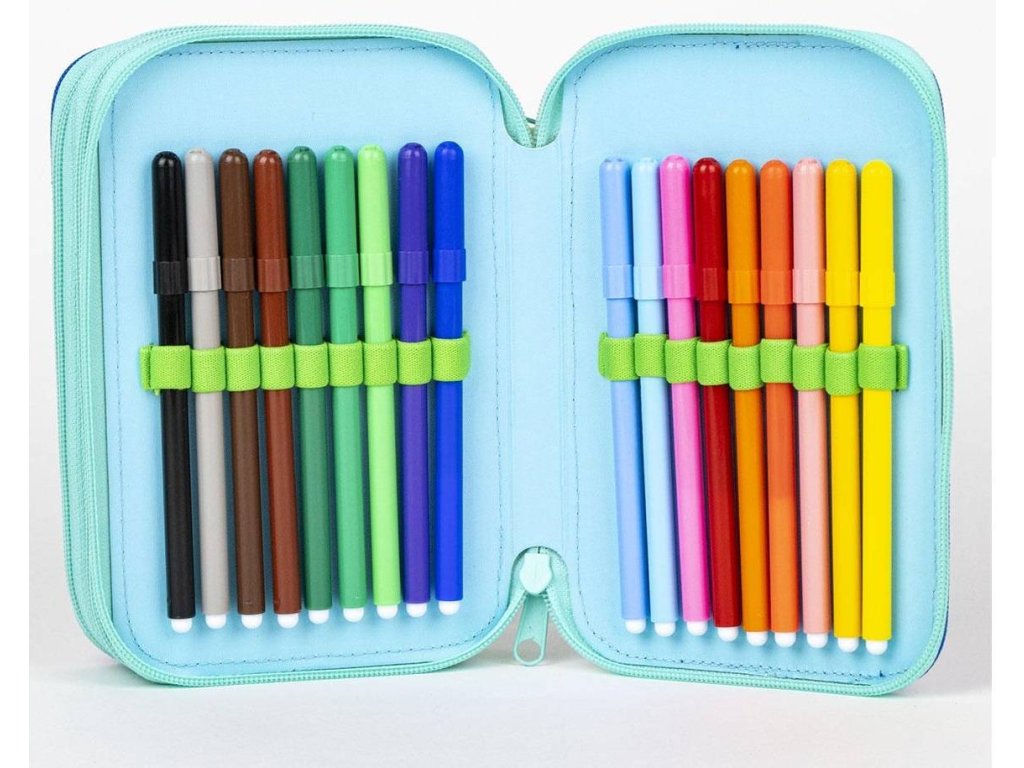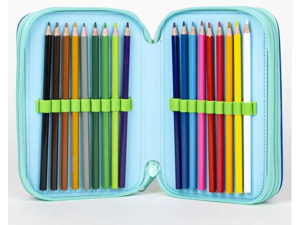 Tříkomorový rozkládací školní penál od španělského výrobce. Penál má 3 přihrádky uzavírané na zip. Ideální pro všechny, kteří mají rádi pořádek ve svém penálu. Každý kus vybavení zde najde své místo. V jedné přihrádce jsou fixy, ve druhé pastelky a ve třetí potřebné školní pomůcky. Veškeré vybavení s prvky označenými logem. Příslušenství fix 16ks pastelky 16ks tužka HB 2ks propiska 2ks guma 1ks ořezávátko 1ks pravítko 1ks nůžky 1ks Materiál 100% polyester Rozměry 12.5 x 19.5 x 6.5 cmUpozornění !